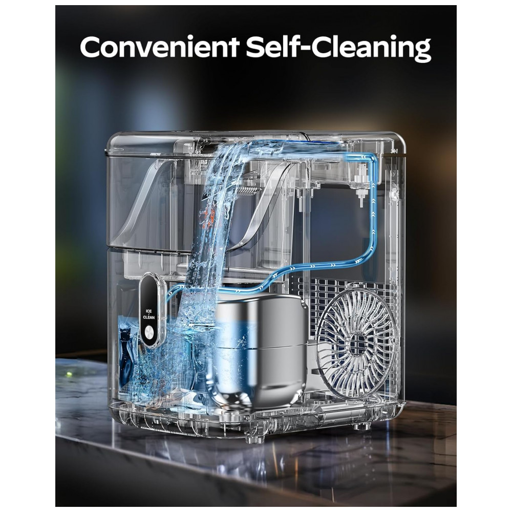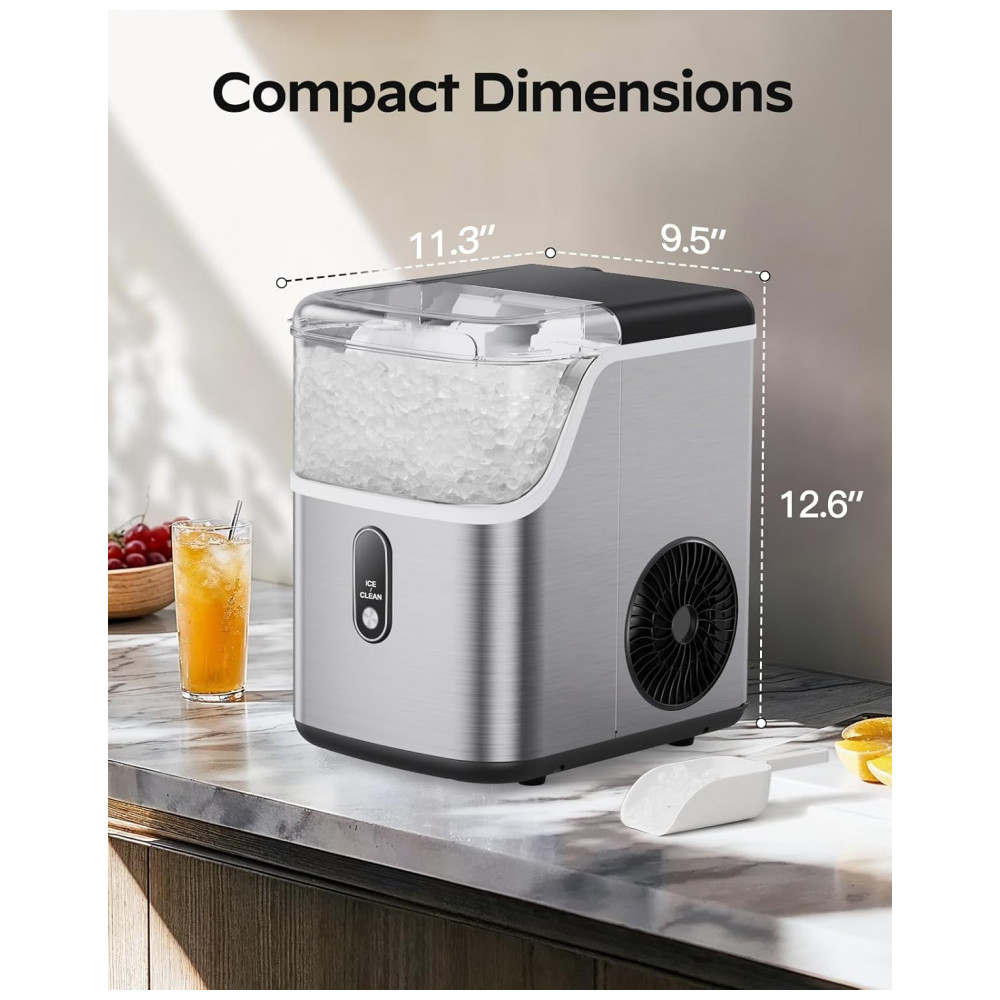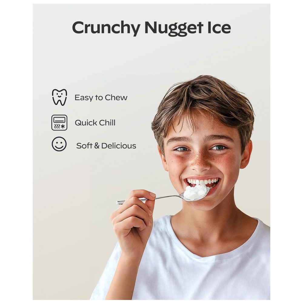 Máquina de Gelo de Alto Rendimento: Esta máquina de gelo de seixos oferece gelo fresquinho em forma de pepitas em apenas 10 minutos, com uma produção diária de até 15 kg. É o suficiente para preparar até 150 bebidas por dia, tornando-se a solução ideal para festas ou reuniões.
