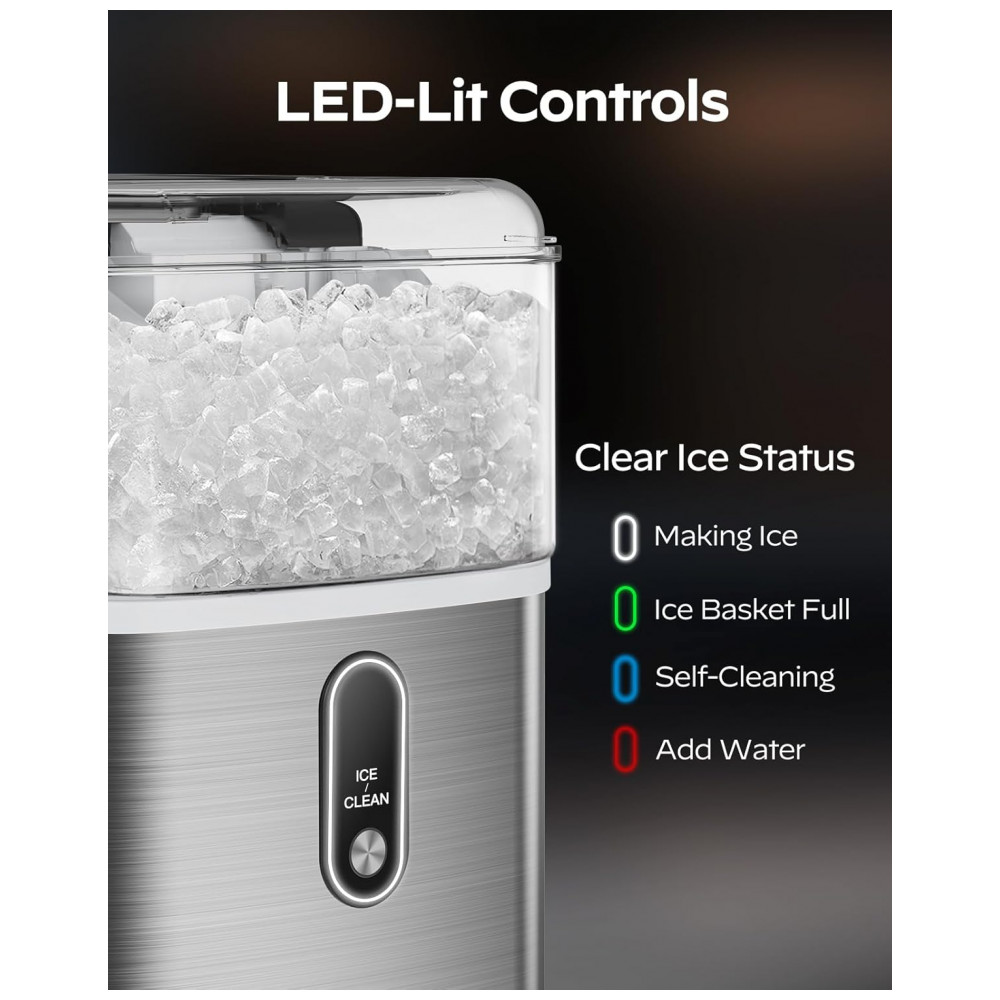 Máquina de Gelo que Produz 15 kg em 24H com Seixos que Fornece Gelo Fresco em Pepitas Função Autolimpeza e Indicador LED 110V HOMEZAY Prata