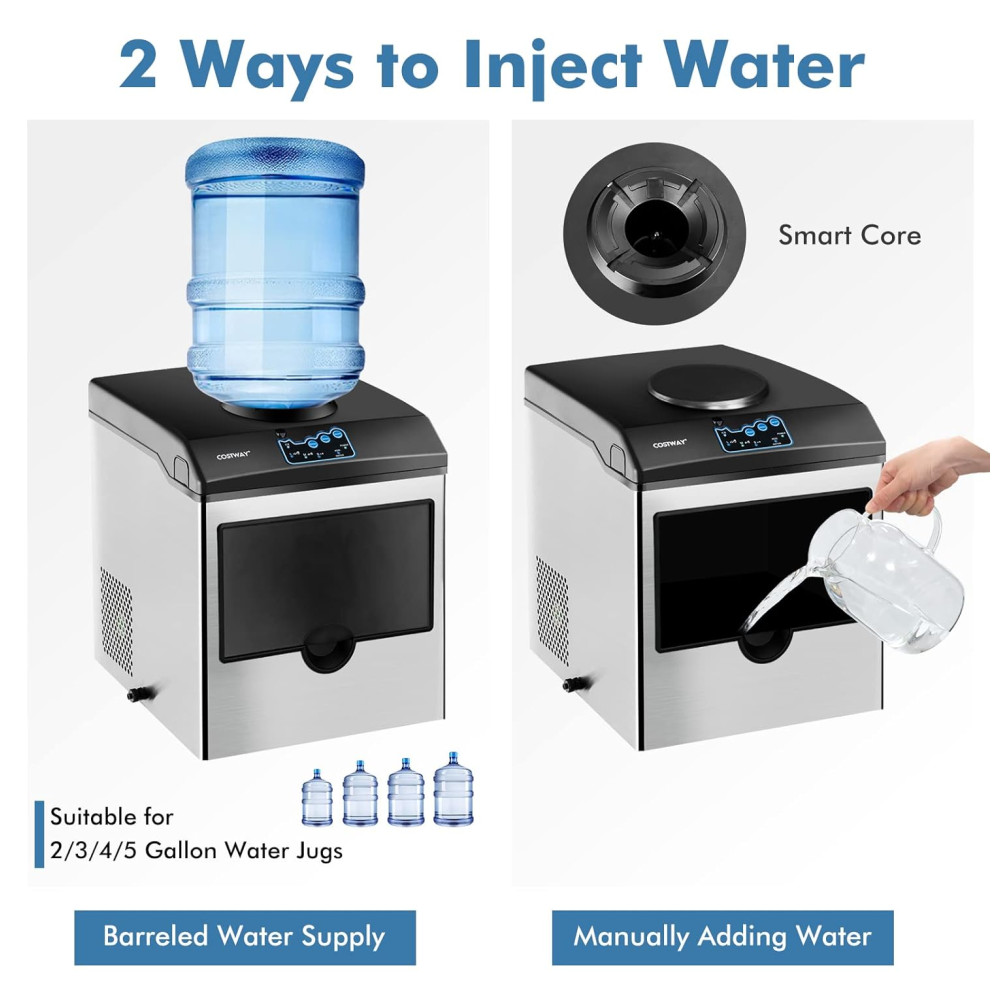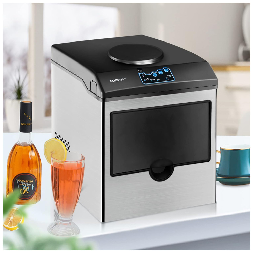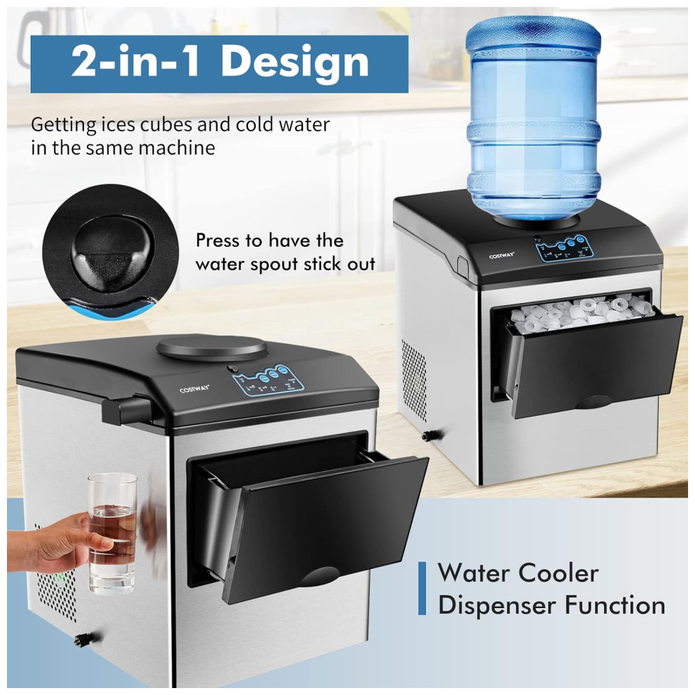 Máquina de Gelo que Produz 21 kg em 24H com Armazenamento de 2 kg e Dispensador de Água Gelada 110V COSTWAY Prata e Preta