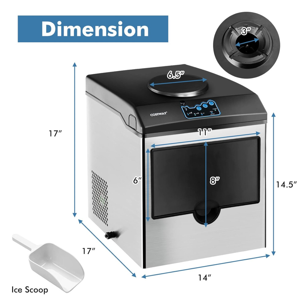Com uma estrutura de 3 camadas de proteção, nossa máquina de gelo é feita com aço inoxidável de alta qualidade, garantindo durabilidade e resistência. O compressor premium proporciona um funcionamento silencioso, sem interferir em suas atividades diárias. A máquina também acompanha uma colher de gelo para facilitar o uso.