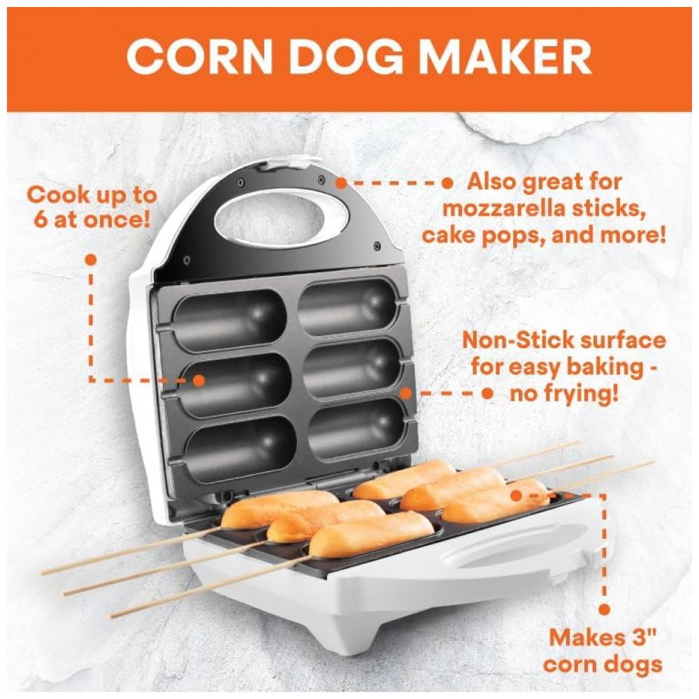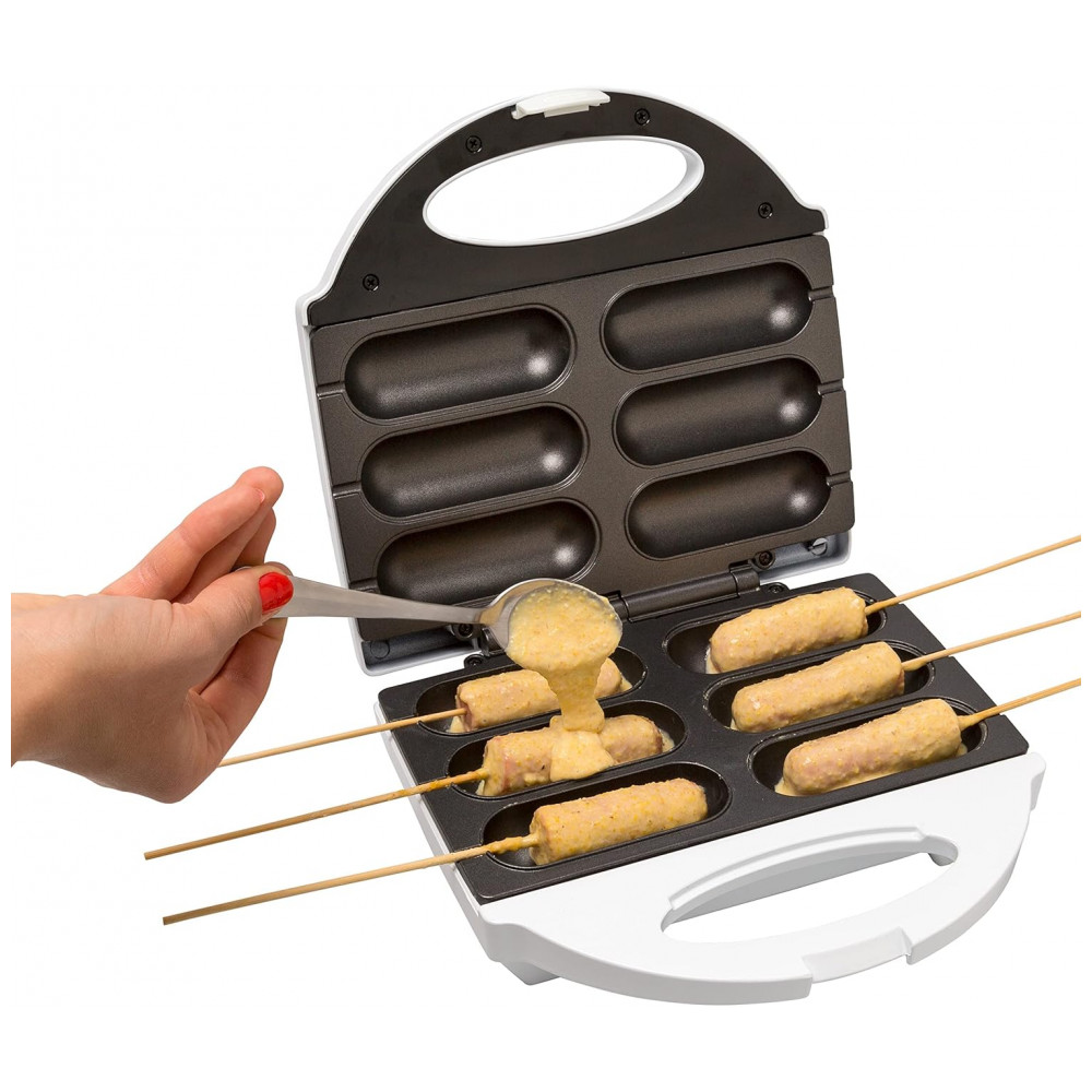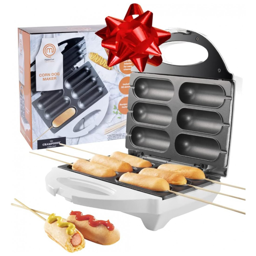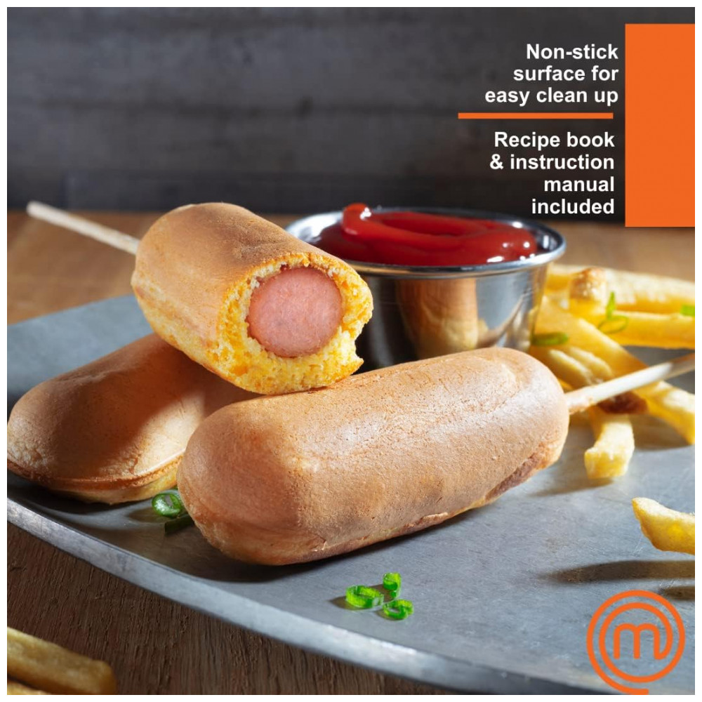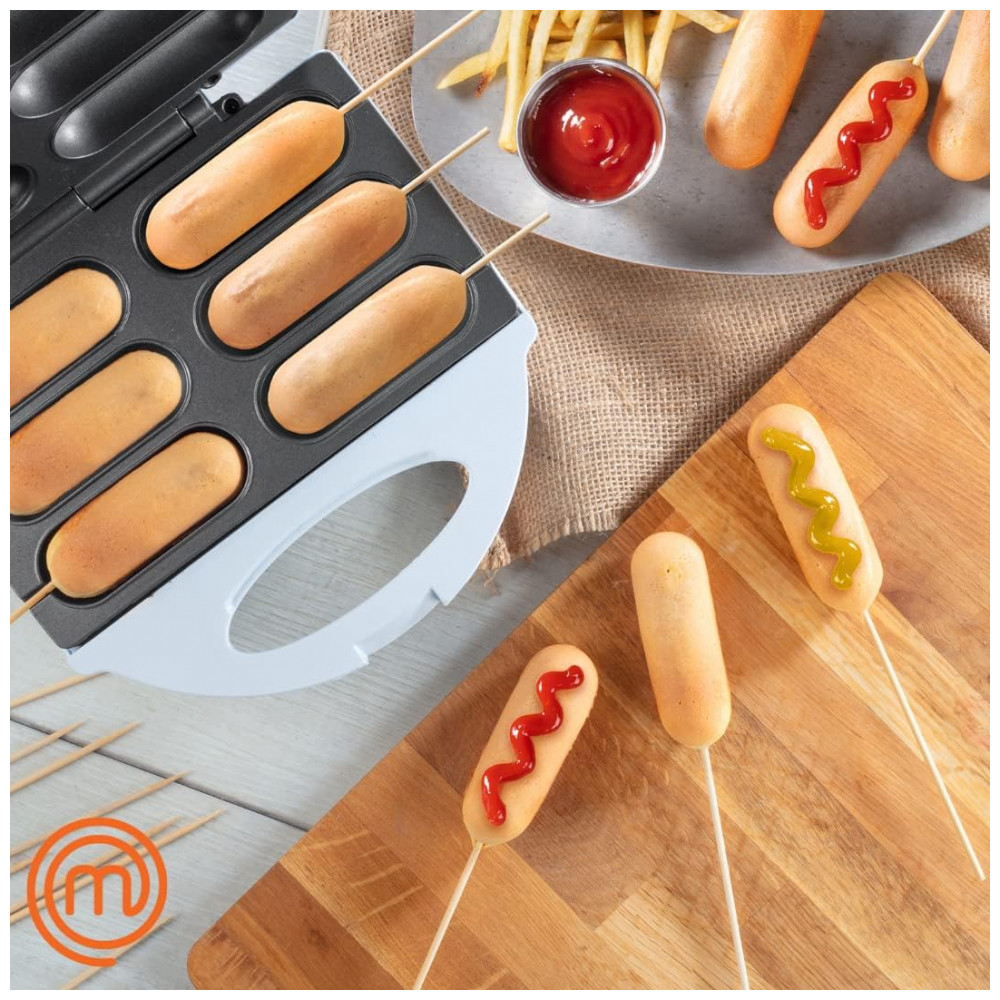 MasterChef Corn Dog Maker Chega de fritar Baker 6 deliciosos corn dogs em minutos use com ou sem palitos.