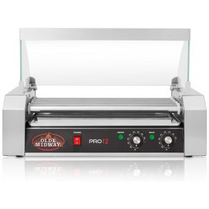 Máquina de Hot Dog com 5 Rolos Antiaderentes para Até 12 Salsichas 110V 700W OLDE MIDWAY Prata