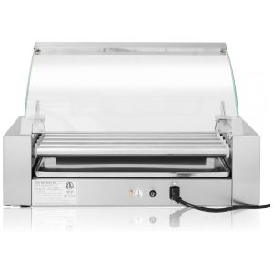 Nível : construído em aço inoxidável de alta qualidade, este grelhador de cachorro quente de 700 watts de nível possui 5 rolos antiaderentes que podem cozinhar até 12 cachorros quentes por vez. Esses rolos lentos giram 360 graus, cozinhando todos os itens uniformemente. Esta máquina é adequada para grelhar todas as variedades de cachorros quentes, salsichas, taquitos e muito mais.