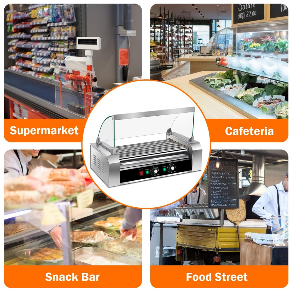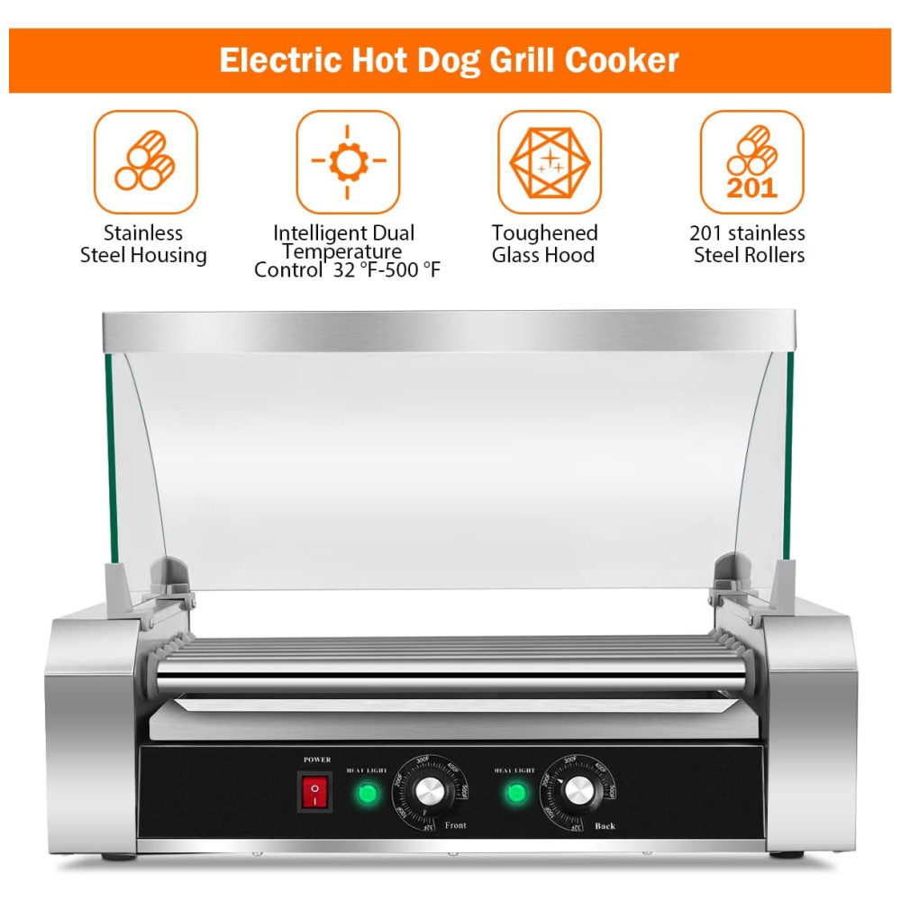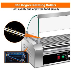 Cozimento completo e uniforme: Com controle inteligente de temperatura dupla de 32 500 0 260 , a grade de aço inoxidável assa os cachorros quentes de maneira rápida e eficiente. A rotação completa do rolo de 360 graus fornece um movimento lento e consistente para cozinhar uniformemente os alimentos sem cozinhar demais ou queimar, tornando os mais saborosos e deliciosos.