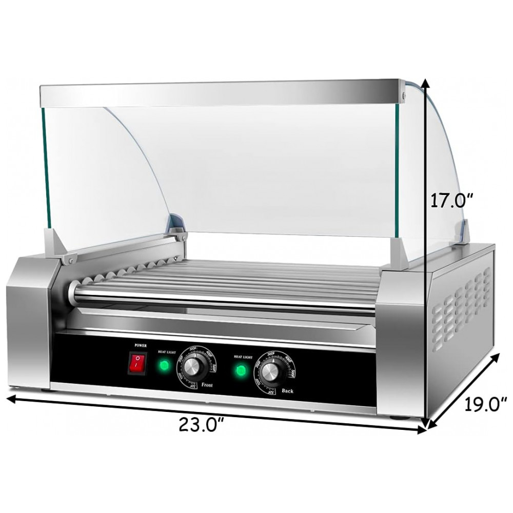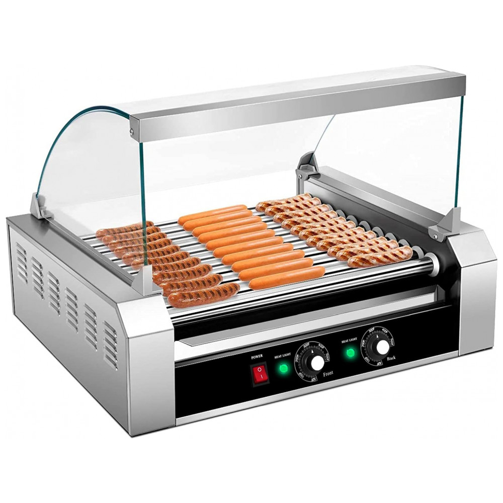 Grande capacidade Total de 30 cachorros quentes por lote, todos os 7 rolos premium de aço inoxidável de grau e sem etiqueta giram 360 graus, aquecidos uniformemente.