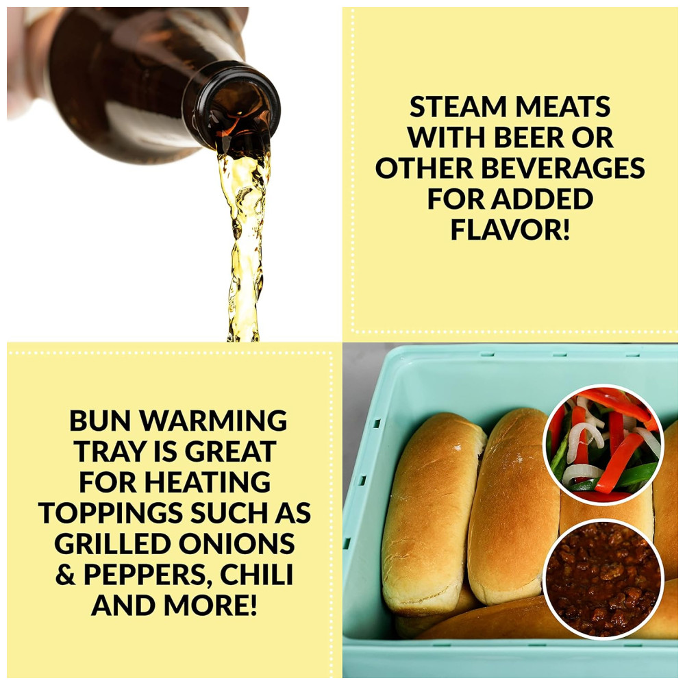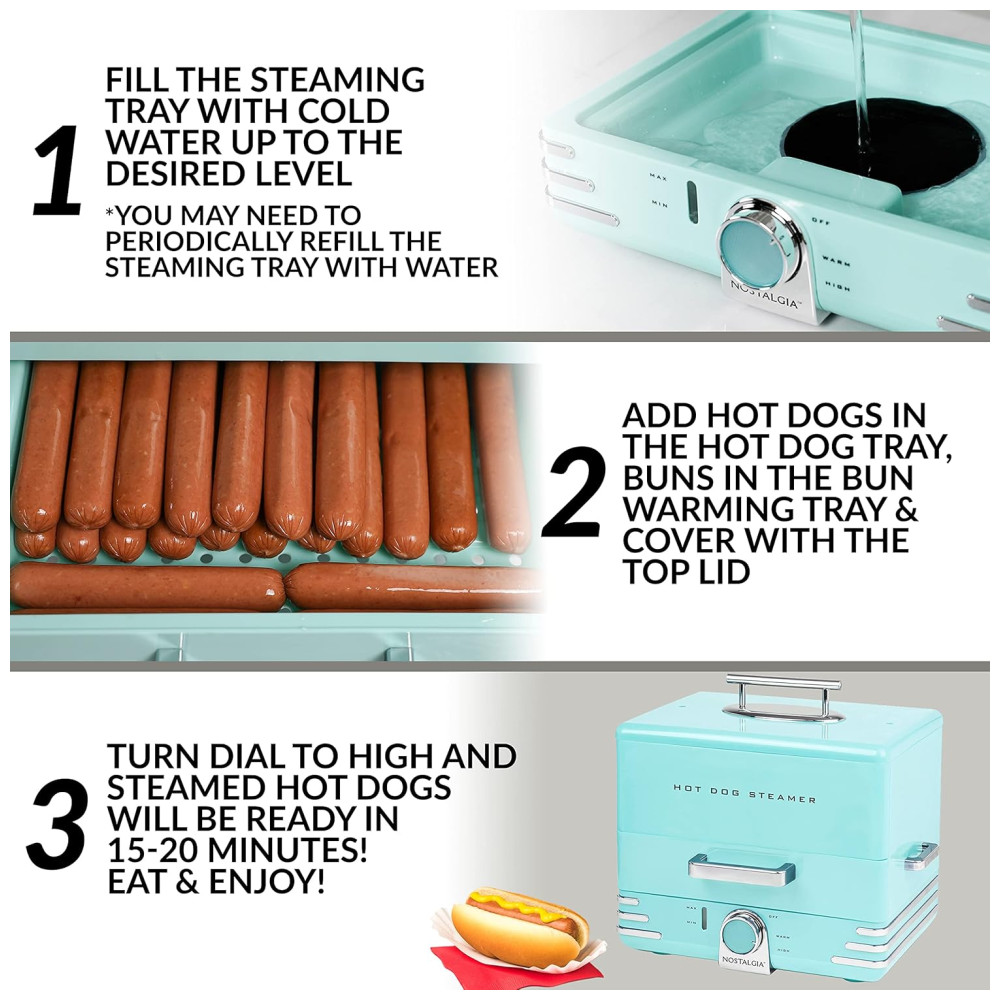 GRANDE ESTILO E EXCELENTE SABOR O vaporizador de cachorro quente estilo lanchonete cozinha até 20 cachorros quentes por vez e pode cozinhar salsichas de café da manhã, bratwursts, vegetais, peixes, bolinhos e muito mais