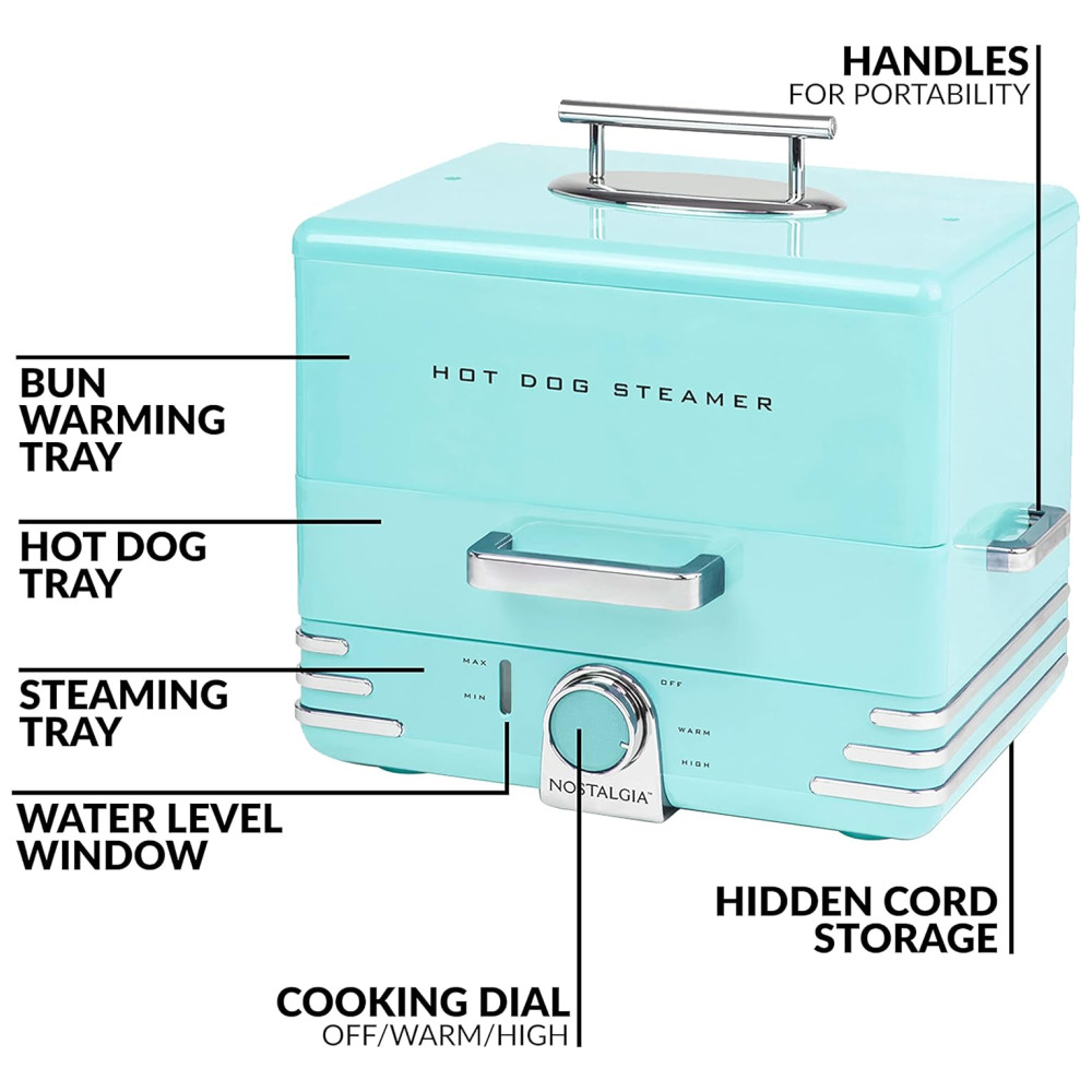 Máquina de Hot Dog Nostalgia até 20 Salsichas por Vez Aço Inoxidável 110V 1500W Azul Turquesa