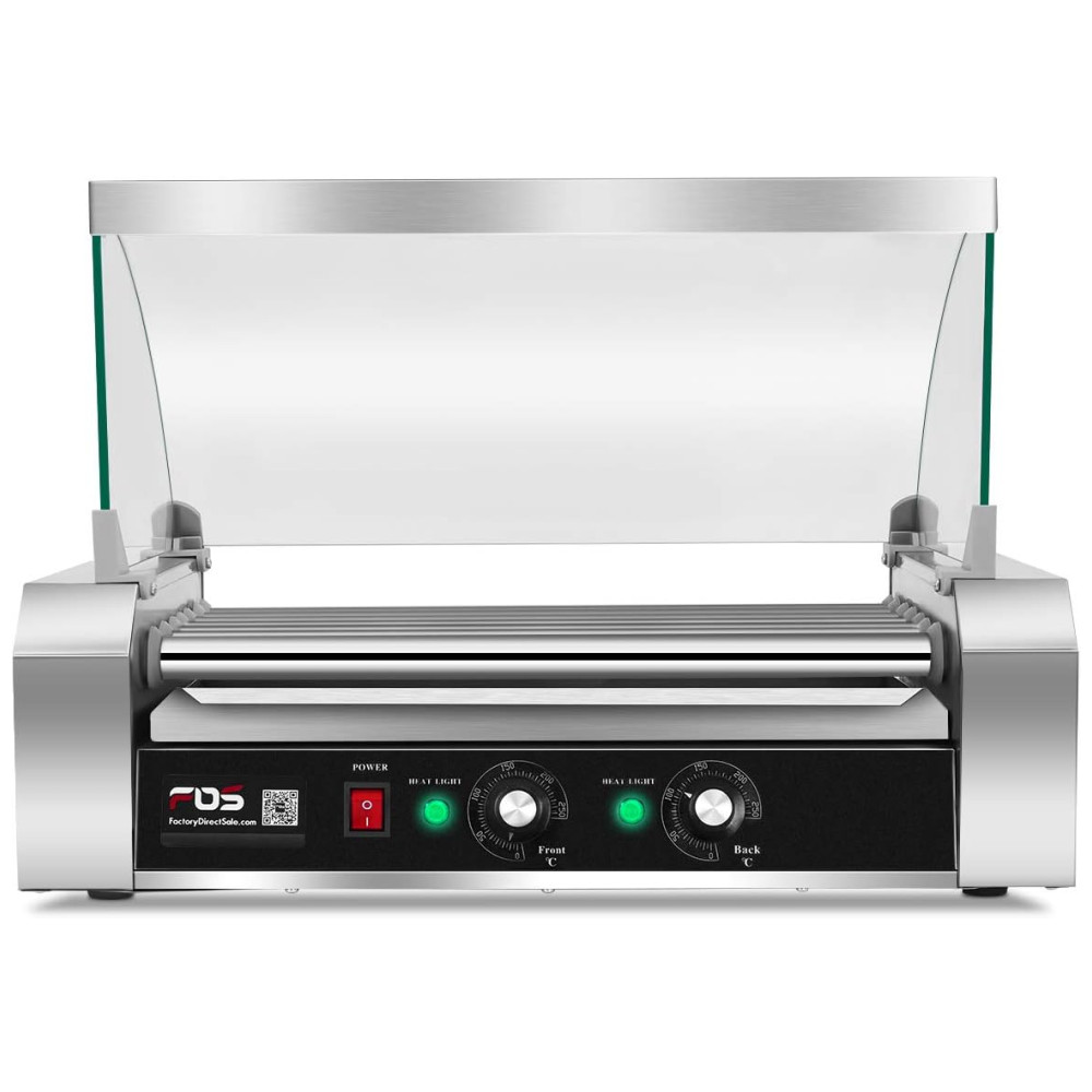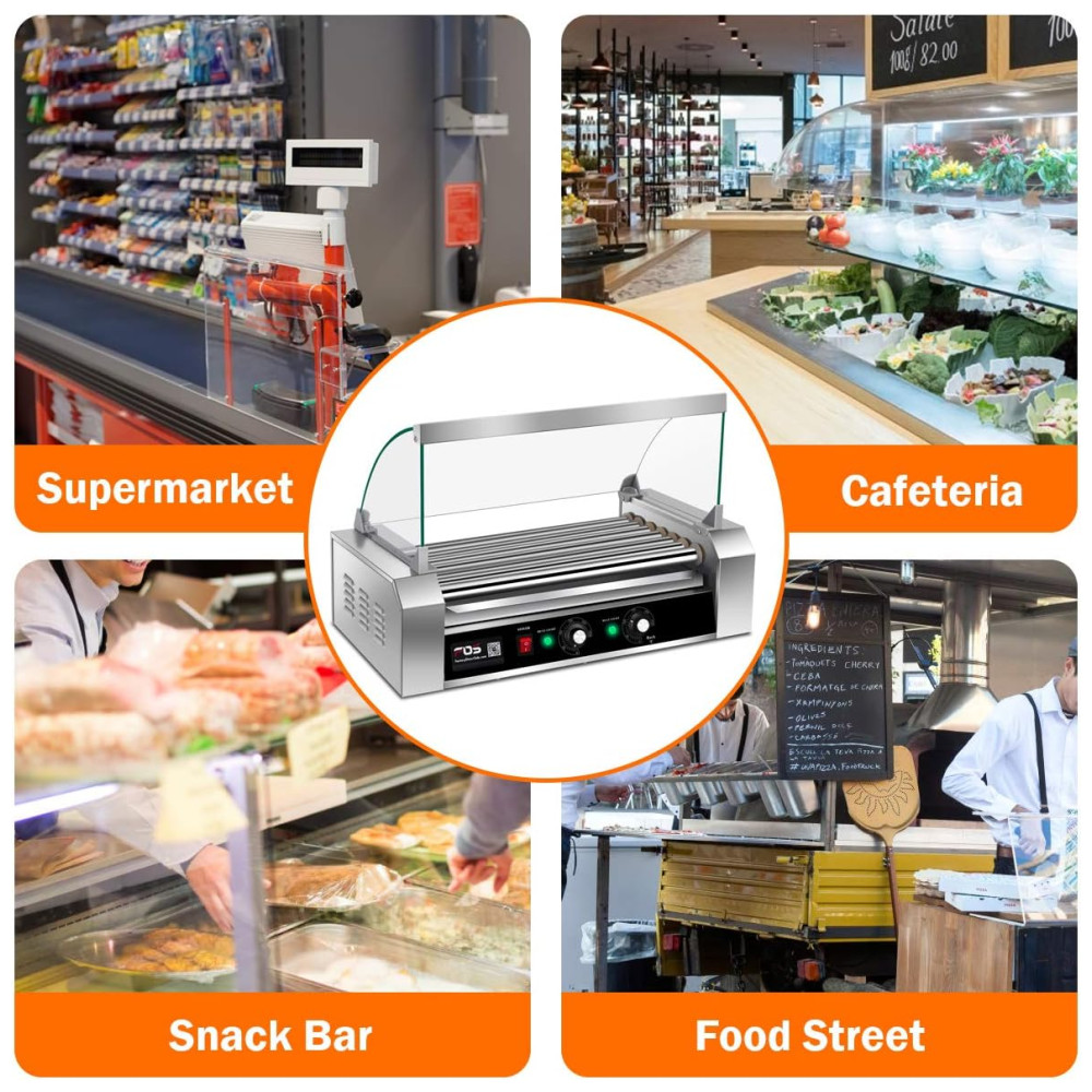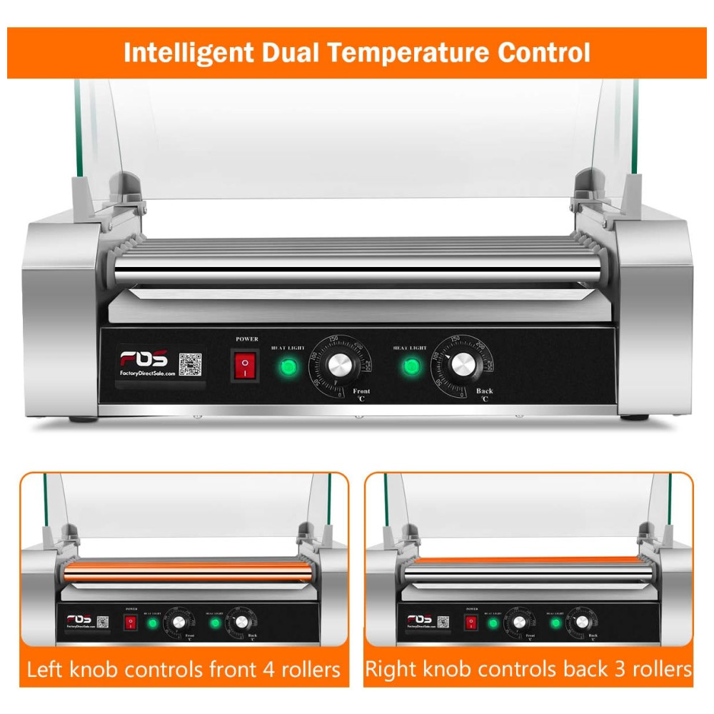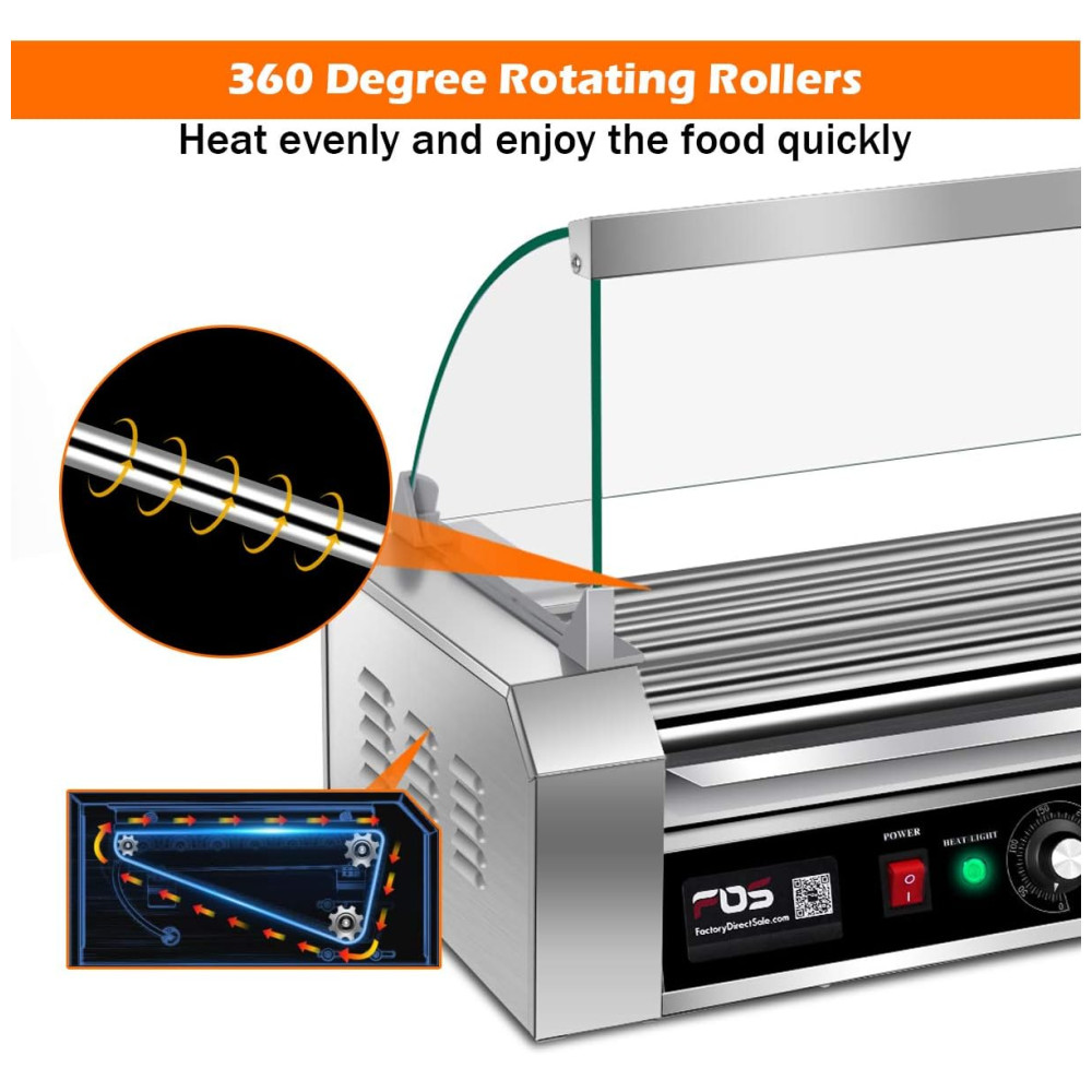 Rolos antiaderentes Todos os 7 rolos de aço inoxidável de grau premium e antiaderentes giram 360 graus, aquecidos uniformemente. Capacidade máxima 18 cachorros quentes por lote. Controles de temperatura separados Os controles dianteiro e traseiro possibilitaram assar na frente, mantendo os cachorros quentes aquecidos atrás. Inclui uma bandeja removível de aço inoxidável para limpeza rápida e fácil. Qualidade Perfeito para uso e doméstico. Grelhe seu próprio cachorro quente ou salsicha estilo estádio usando nossa máquina de cachorro quente Roller de qualidade . Potente e de usar Carregado com recursos de segurança, este fogão tem um fusível embutido, cabo de alimentação aterrado de 110 volts padrão dos EUA e pés de borracha antiderrapantes. Sistema de resfriamento projetado A dissipação de calor poroso multifacetado garante uma temperatura razoável da máquina e estende a vida útil da máquina.