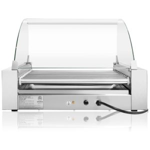 Nível construído em aço inoxidável de alta qualidade, este grelhador de cachorro quente de 1200 watts de nível possui 11 rolos antiaderentes que podem cozinhar até 30 cachorros quentes por vez. Esses rolos lentos são ideais para grelhar todas as variedades de cachorros quentes, salsichas, taquitos e muito mais. Controles de temperatura dupla design fácil de usar com botão liga , desliga e controles de temperatura separados para os rolos dianteiros e traseiros convenientemente localizados no painel frontal. Os controles de temperatura dupla permitem o cozimento contínuo nos rolos traseiros, enquanto os rolos frontais mantêm os itens cozidos quentes e prontos para servir. Cozimento completo e uniforme 11 rolos antiaderentes de aço inoxidável giram 360 graus para cozinhar todos os itens uniformemente. Quer esteja a cozinhar salsichas, cachorros de estádio grossos, salsichas rechonchudas ou mesmo cachorros quentes congelados, estes rolos podem fazer tudo de forma rápida e eficiente. Design limpo e conveniente cozinhe e grelhe em quase qualquer lugar e evite a bagunça e o incômodo de uma churrasqueira a gás convencional de tamanho normal com este design poderoso e compacto que pesa apenas 28 libras. Inclui uma bandeja removível de aço inoxidável para limpeza fácil. Recursos de segurança integrados pés de borracha antiderrapantes fornecem uma base segura para cozinhar, e a unidade é equipada com um fusível embutido e um cabo de alimentação aterrado de 120 volts padrão dos EUA para segurança.