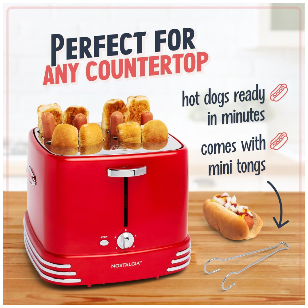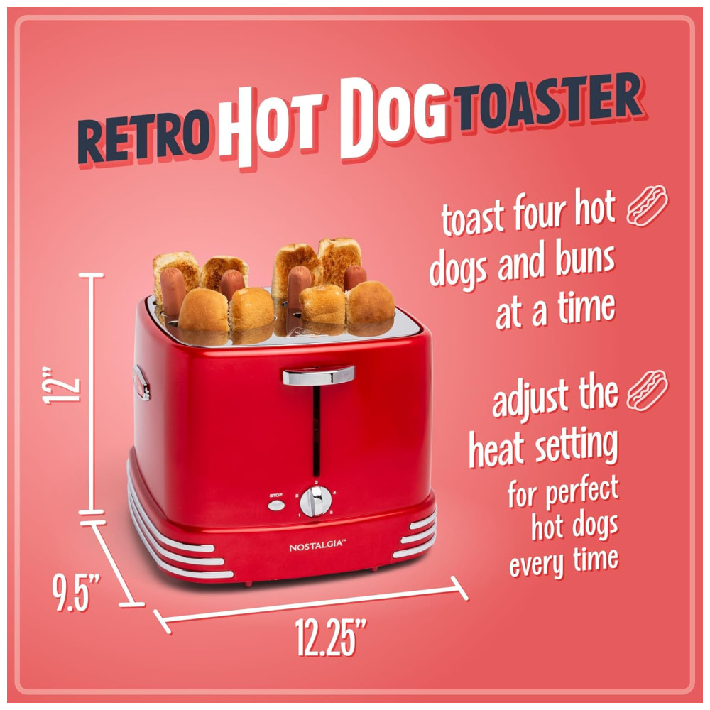 Máquina de Hot Dog Pop Up 4 Pães 1200W 110v NOSTALGIA RHDT800RETRORED Vermelho