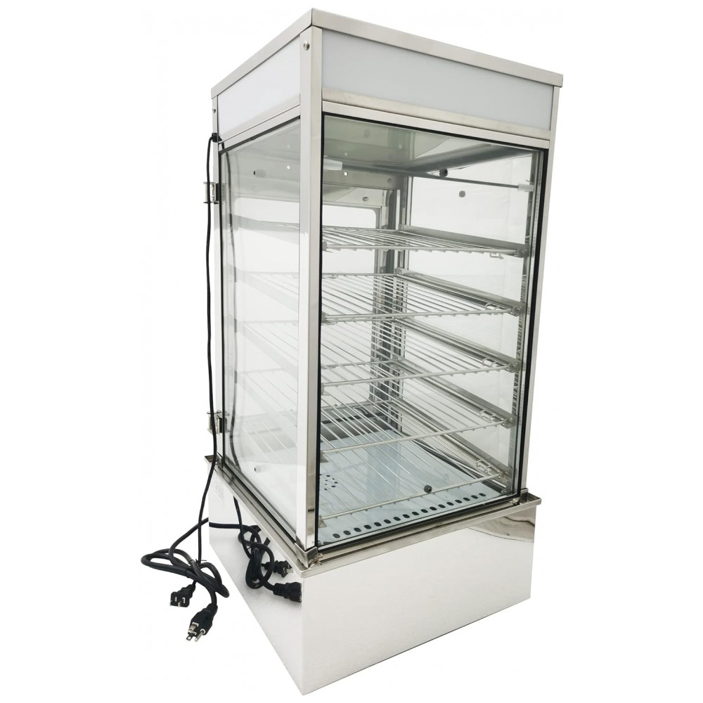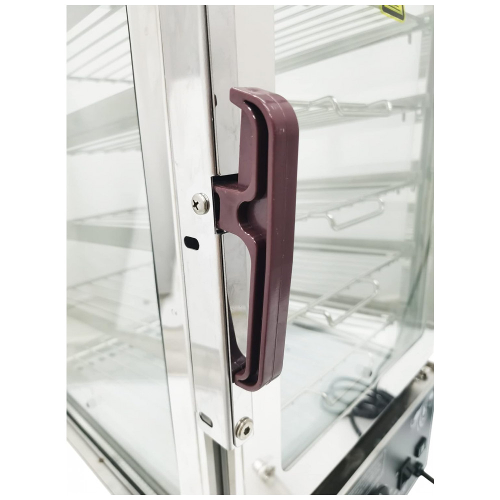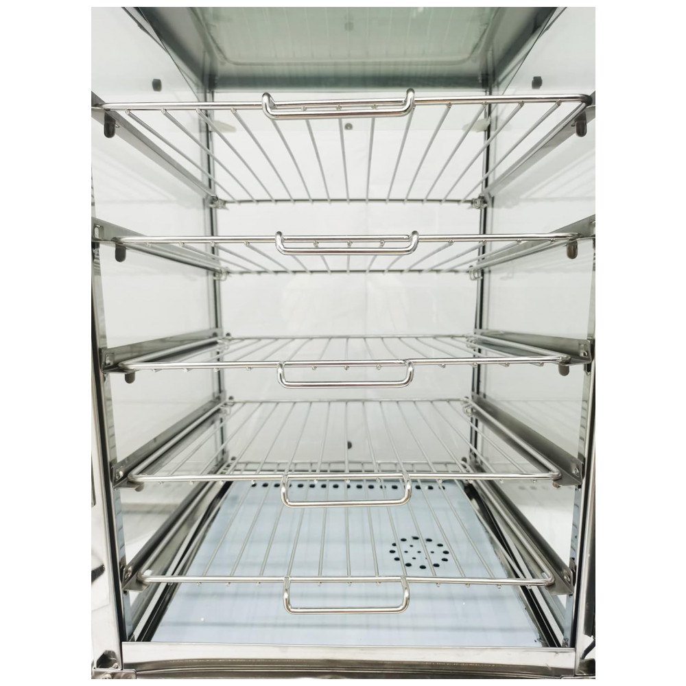 Material de aço inoxidável Aço inoxidável de qualidade alimentar, prateleira de aço inoxidável de 5 camadas, vidro temperado nos quatro lados, alça antiescaldante de tipo aberto, muito segura e firme.