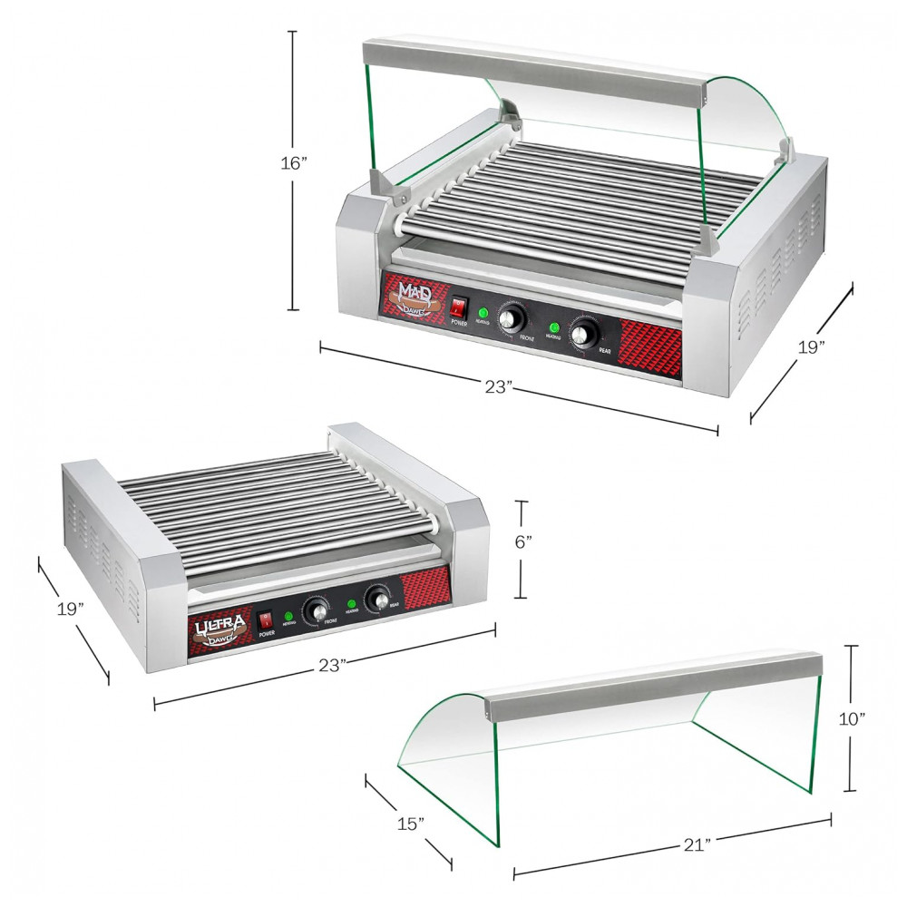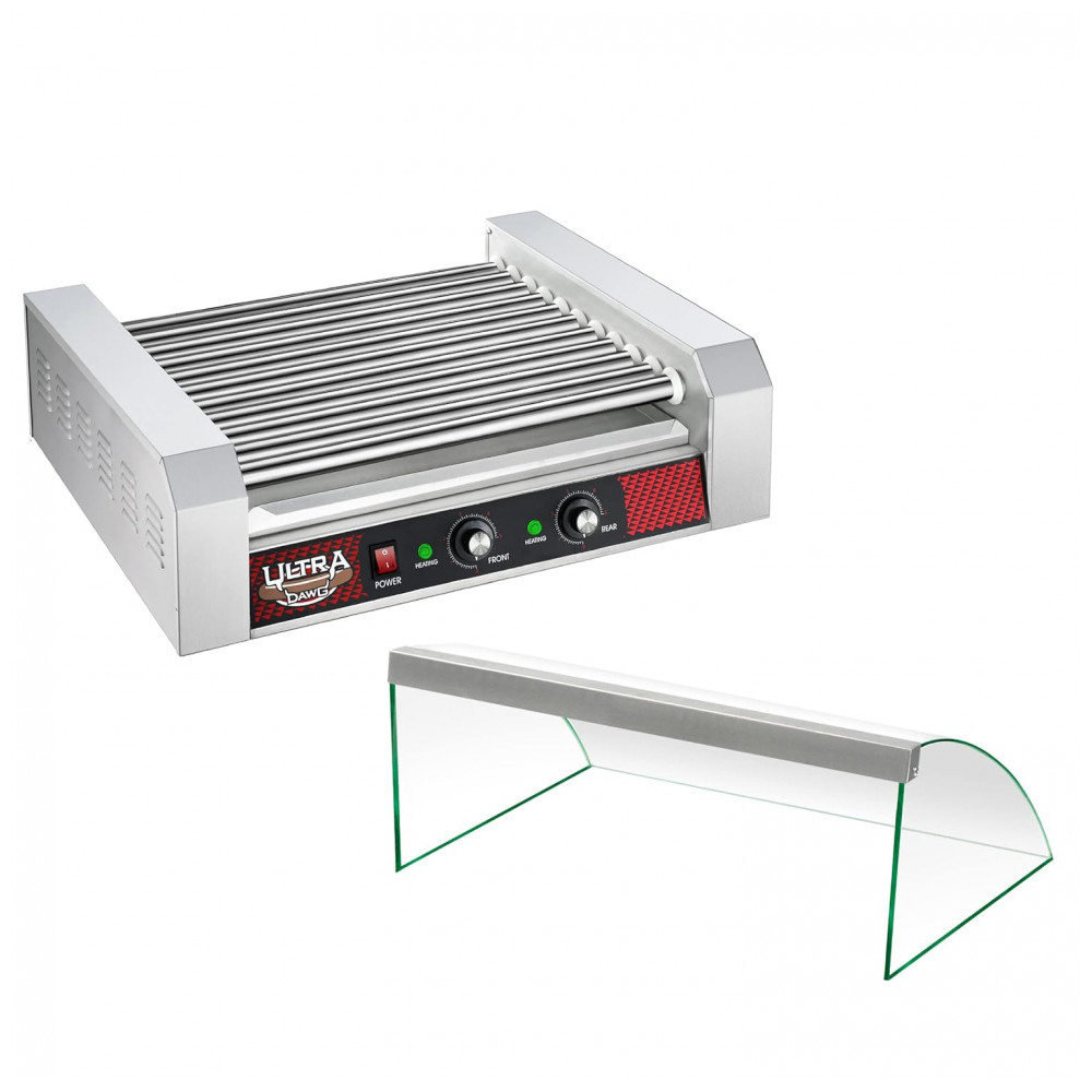 TAG1 ACAPA DE VIDRO TEMPEREDOA fabricante de cachorro quente de bancada apresenta uma forma de gotejamento removível para facilitar a limpeza e uma tampa de proteção de espirro de vidro. Este protetor de grade de vidro temperado manterá suas deliciosas carnes frescas e protegidas dos elementos e germes.