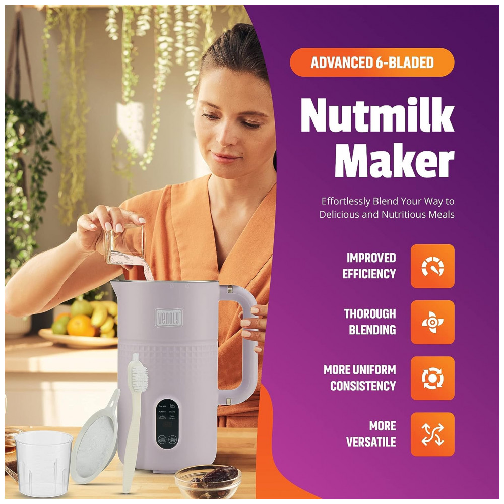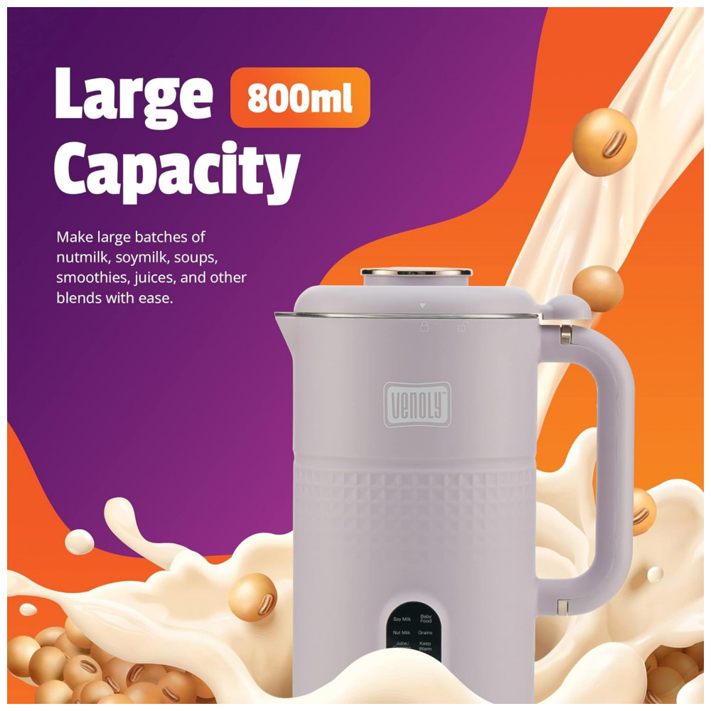 Máquina de Leite Vegetal 1L com Lâminas de Aço Inoxidável e Acessórios Venoly Roxa