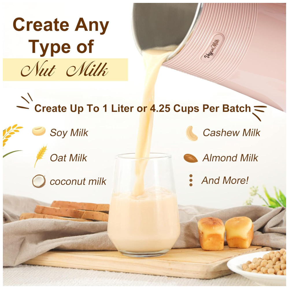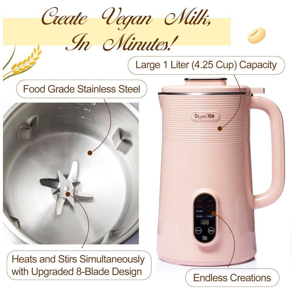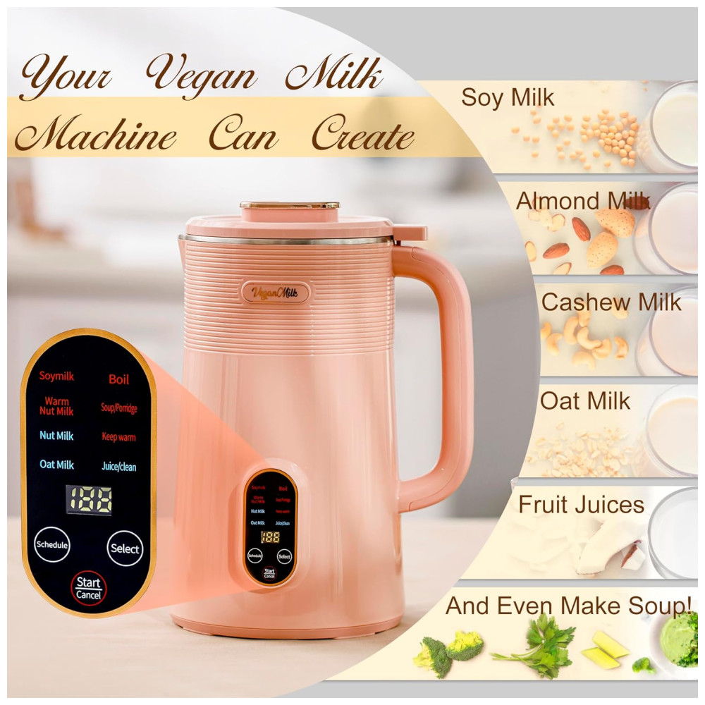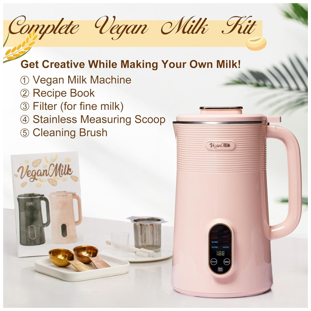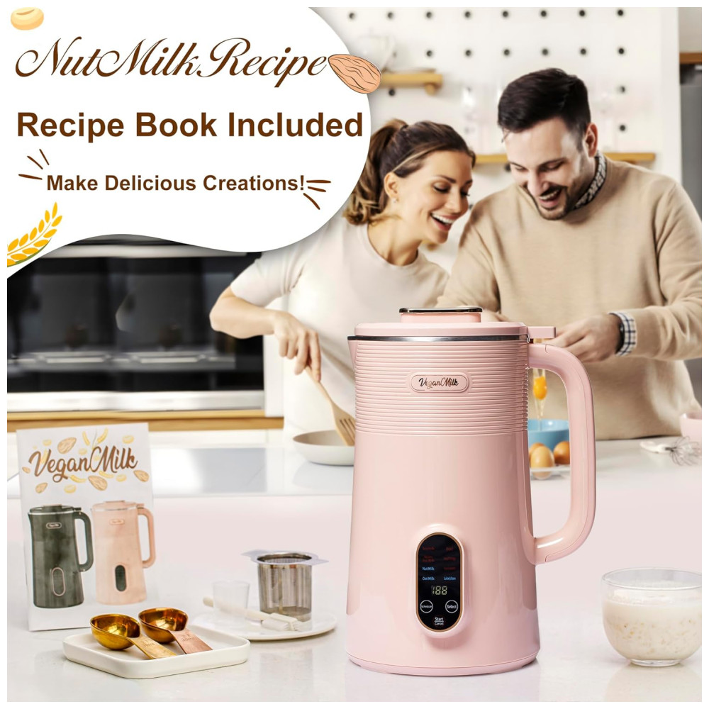 Máquina de Leite Vegetal 8 em 1 1L com Livro de Receitas e Acessórios Incluídos Roman Ventures Rosa