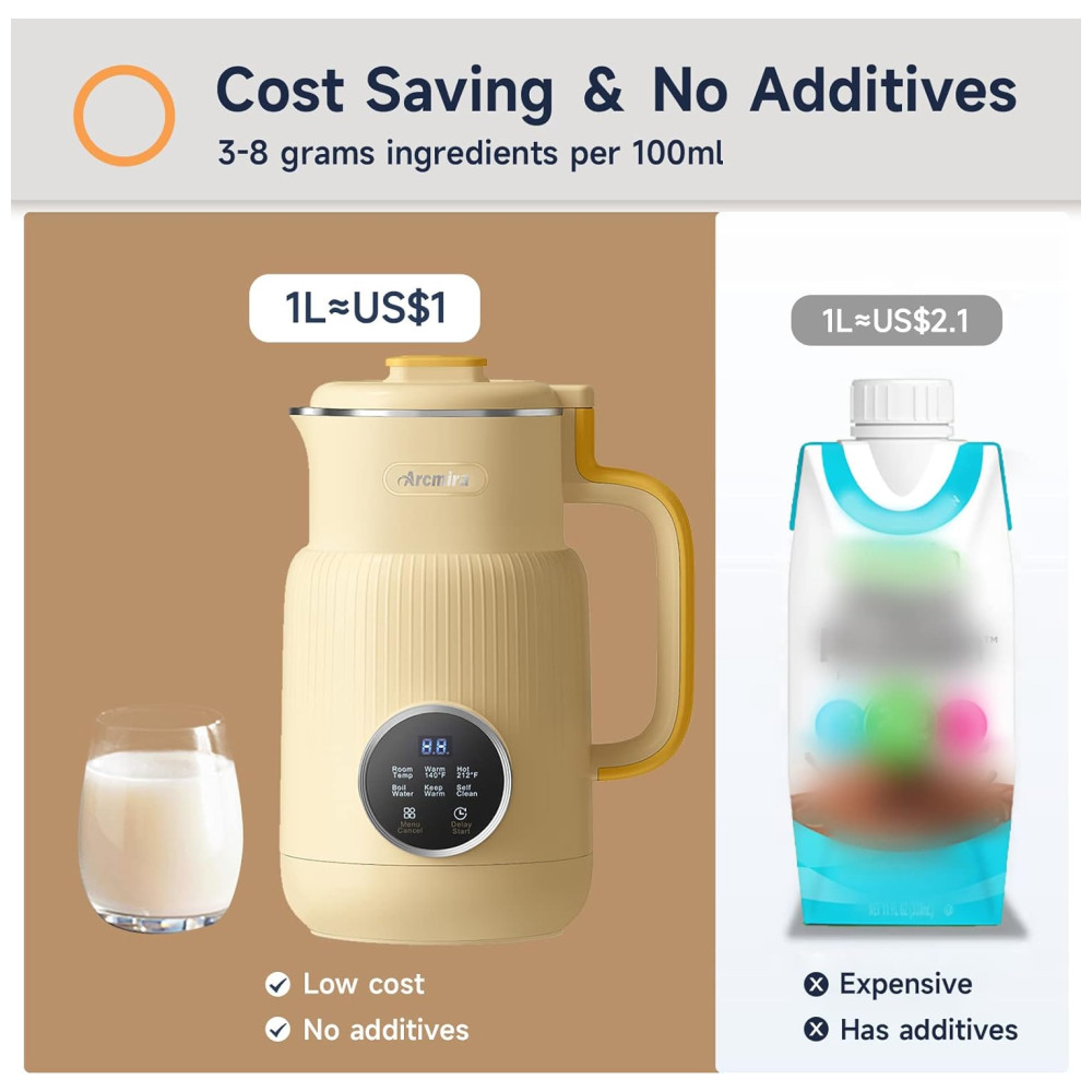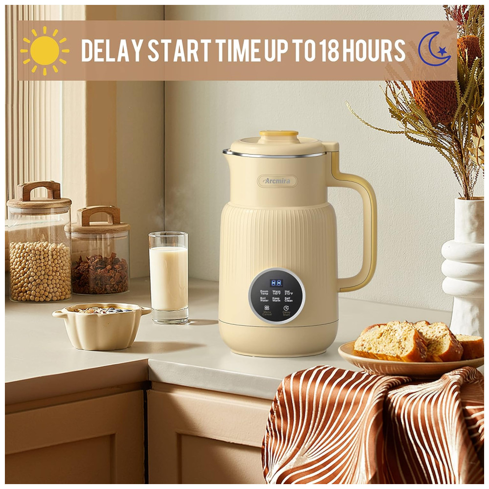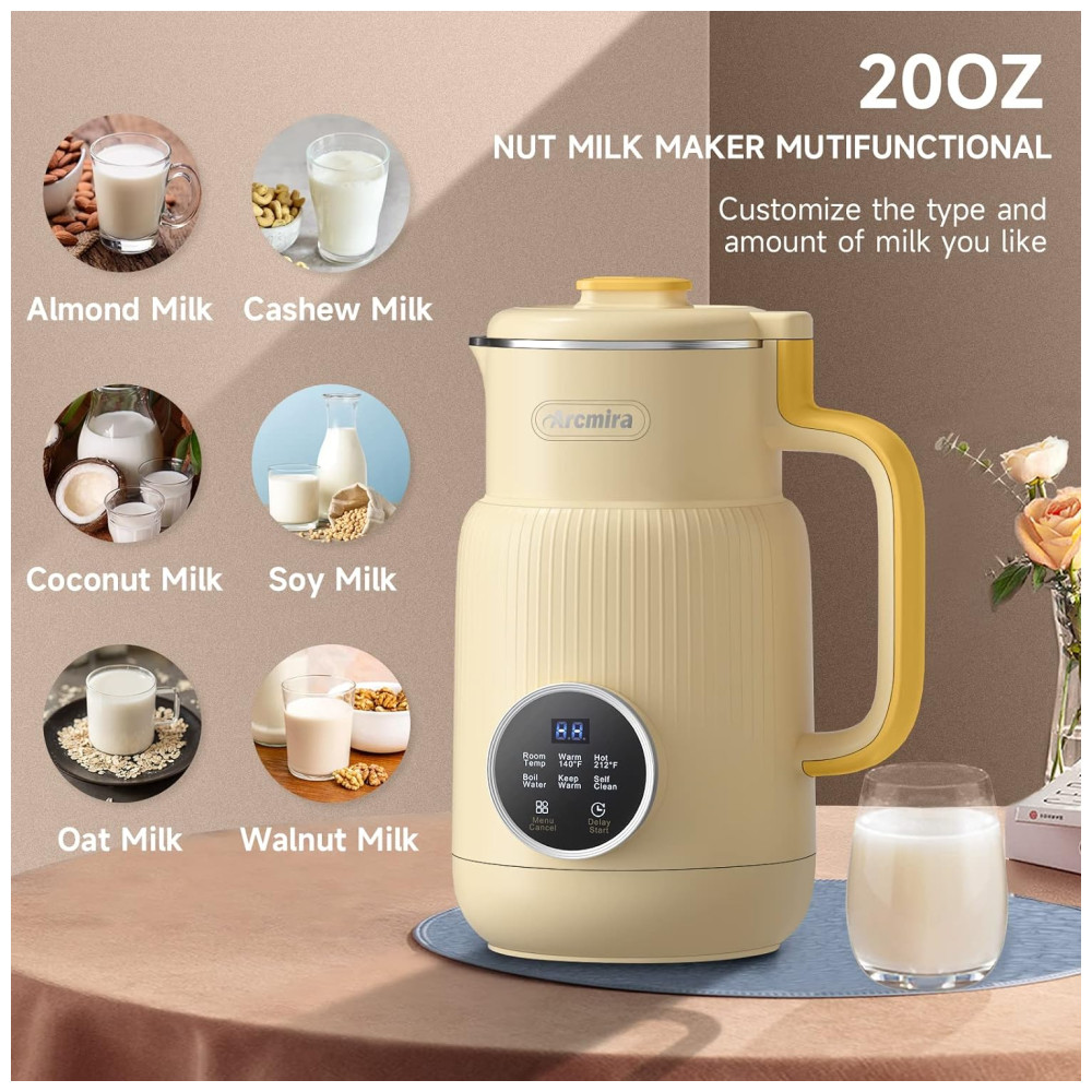 Máquina de Leite Vegetal Automática 600mL com Tela de LED e Acessórios Arcmira Amarela