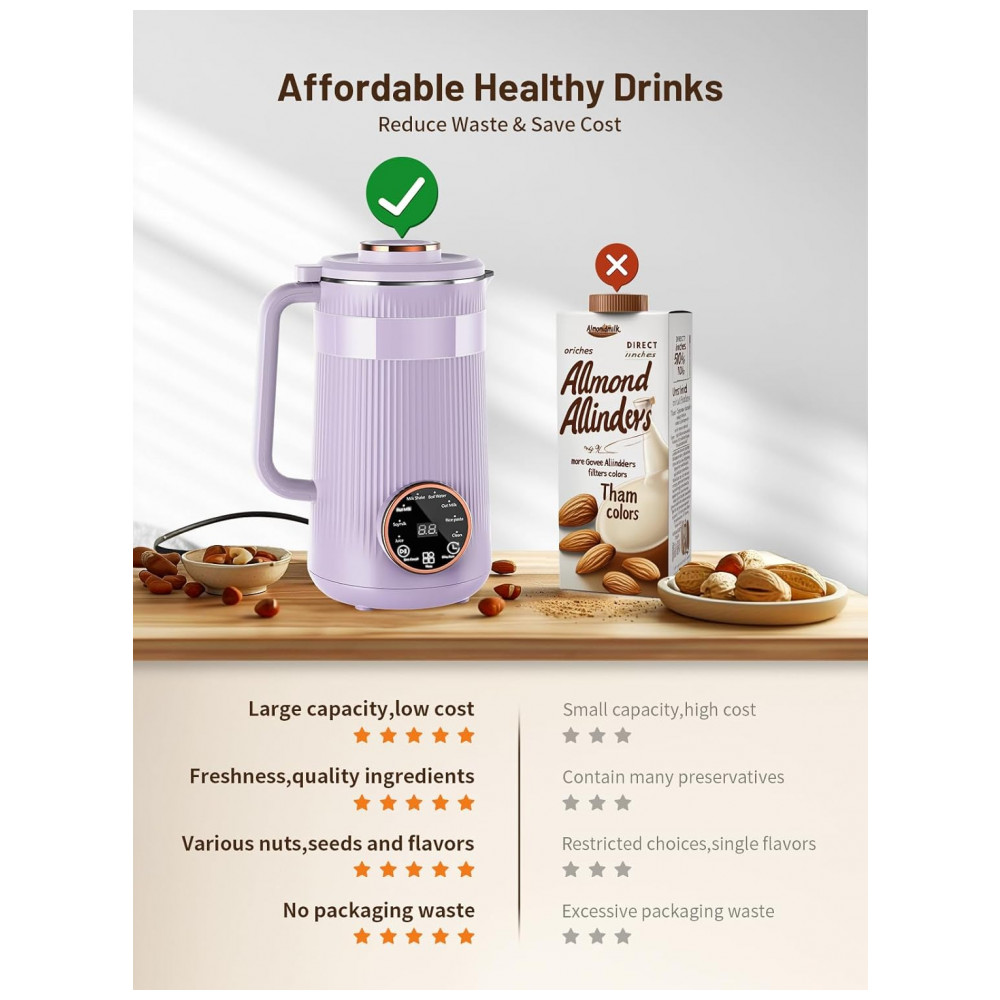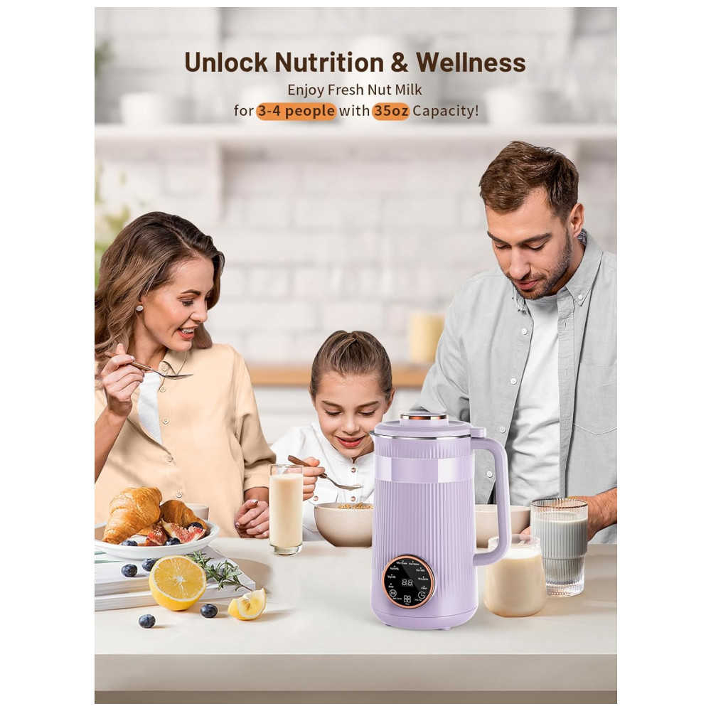 Máquina de Leite Vegetal RELEXNOW Roxa 1L 8 em 1 Programável Autolimpeza Aquecimento 110V