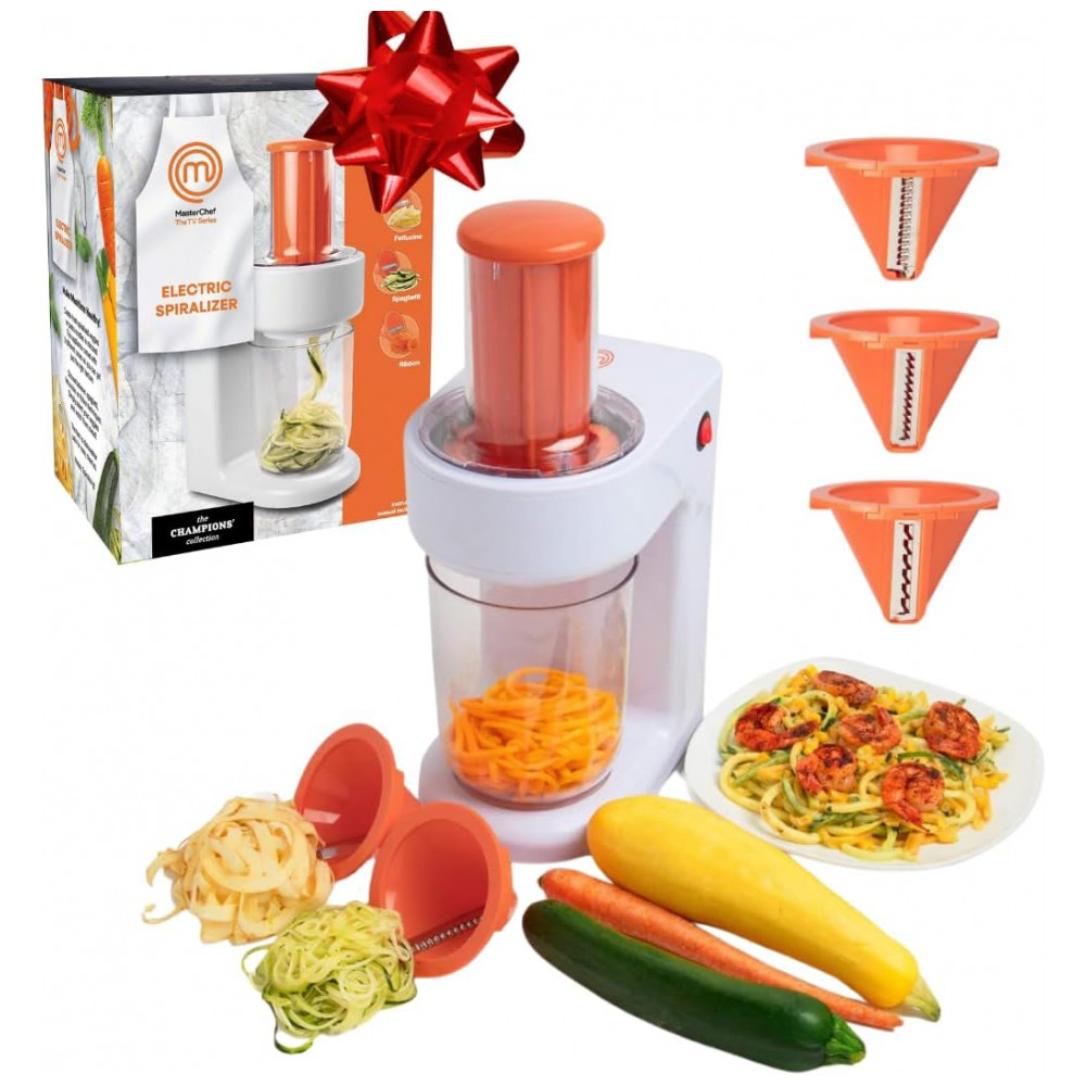 MasterChef Electric Spiralizer 3 em 1 Vegetable Noodle Pasta Maker w 3 Diferentes Estilos de Fatias Zoodle e XL Hopper Guia de Receitas Espiralizar é a arte de transformar vegetais em macarrão. É uma ótima maneira de criar alternativas deliciosas, saudáveis e satisfatórias aos pratos tradicionais