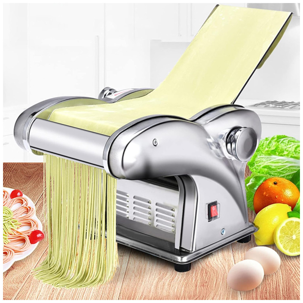 Cor Prateado. Criador de massas elétrico 135W 110V Descrição do produto Este produto é uma máquina de prensagem totalmente nova, que pode ser usada como massa, com 1, de superfície fina e de largura. É uma máquina de prensagem de duas facas de aço inoxidável e não enferruja. Motor 135W, rápido, e confiável, adequado para uso doméstico 6 tipos de espessuras reguláveis, fácil de operar, sem necessidade de fixar 6 limas, pode ser para fazer bolinhos, macarrão e outras massas. Voltagem 110V Potência 135W Função massa, macarrão largo, macarrão fino Largura do macarrão 1, de espessura, de largura Incluído no Pacote 1 x máquina de macarrão