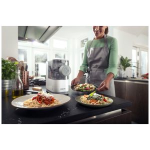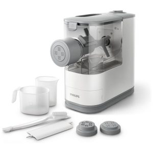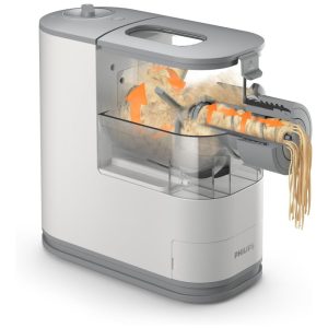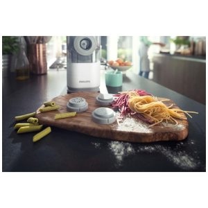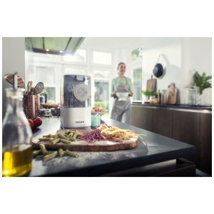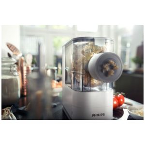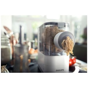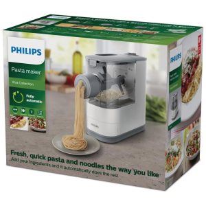 Nome do estilo Branco. O Philips Viva Compact Pasta Maker é uma solução totalmente automática e compacta que permite preparar massas frescas e macarrão do zero com facilidade. Com um processo rápido e automático de mistura, amassamento e extrusão, você pode comer 2 a 3 porções de massa fresca em apenas 18 minutos. Adicione ingredientes nutritivos como ovo, espinafre e suco de cenoura para criar massas e macarrão caseiros saudáveis e sem preocupações para sua família. O design otimizado e compacto permite que você mantenha o criador de massas sempre em sua bancada, deixando o pronto para uso a qualquer momento