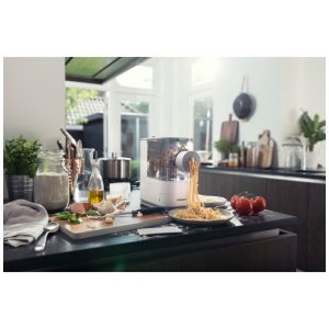Amassa e expulsa automaticamente 2 3 porções de massa fresca em apenas 18 minutos, graças à barra de agitação de design exclusivo. Comprimento do cabo Com a máquina, existem 3 discos de modelagem clássicos padrão para Spaghetti, Penne e Fettuccini. Os discos de moldagem especiais permitem um processo de extrusão dupla para garantir massa lisa e macarrão de forma consistente. Usando diferentes farinhas e adicionando diferentes ingredientes como ovo, ervas ou suco de espinafre e cenoura, você pode fazer vários tipos e sabores de macarrão. O design que economiza espaço permite que você o mantenha fora do balcão para o uso diário zenamento integrado inteligente para moldar discos.