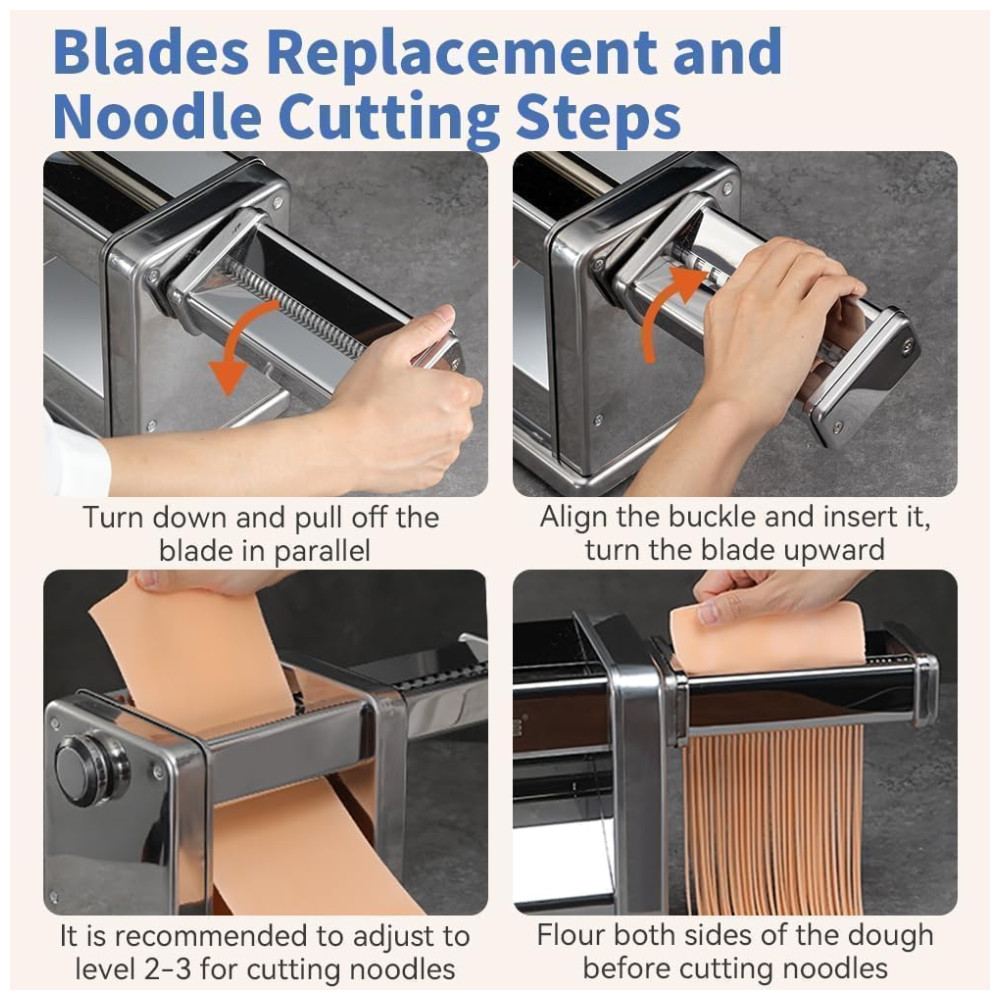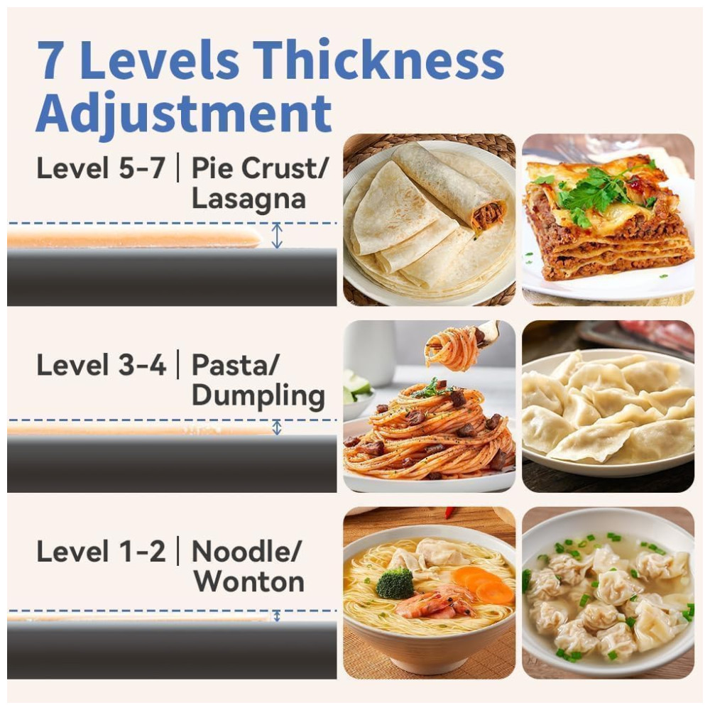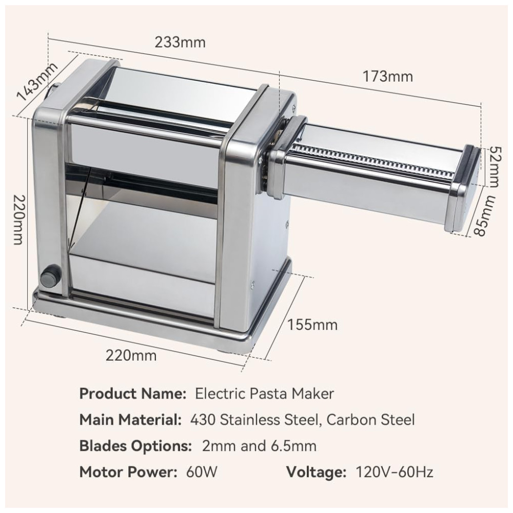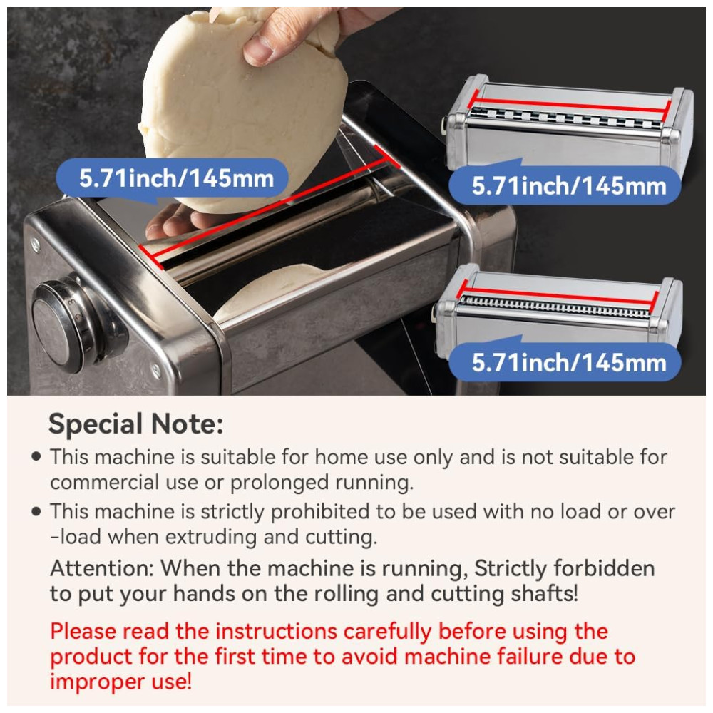 A Máquina de Macarrão Elétrica Maxceysen é o item multifuncional que faltava na sua cozinha! Com dois tipos de lâminas e sete opções de espessura, é ideal para preparar uma variedade de massas, de noodles a pastéis, tornando sua vida na cozinha mais prática e colorida. Tenha controle total dos ingredientes, sem aditivos prejudiciais, garantindo alimentos mais seguros e saborosos. Seu design compacto com motor embutido economiza espaço, enquanto a potência de 60W permite preparar massas rapidamente. Feita em aço inoxidável, a máquina é resistente à corrosão, durável e de fácil manutenção, proporcionando uma ferramenta estável de longa duração para fazer macarrão. E com um serviço pós-venda confiável, você pode resolver qualquer problema rapidamente, sem preocupações, desfrutando da conveniência e diversão que a máquina de macarrão elétrica oferece.