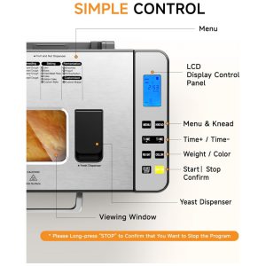 Máquina de Pão Gleedelish 25 em 1 Corpo Aço Inoxidável Prata Dispensador Frutas & Nozes Capacidade 907 gramas Voltagem 110V