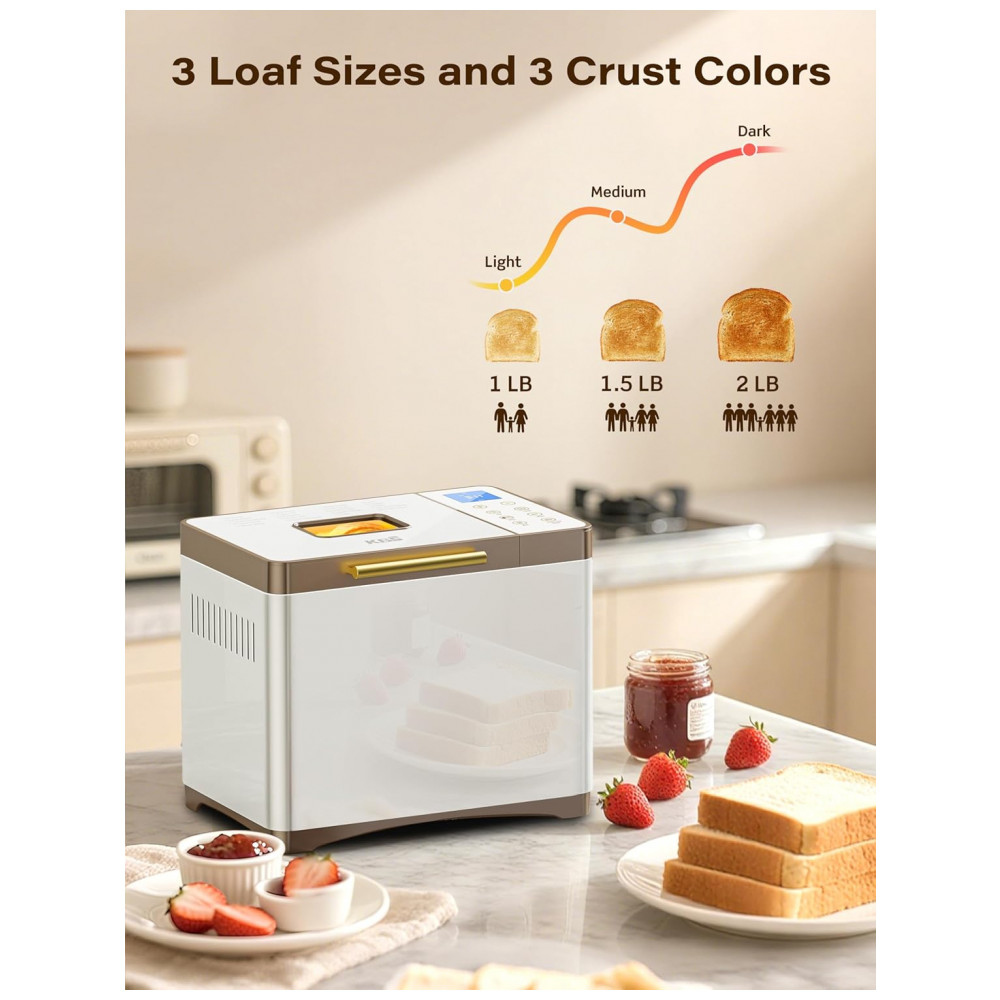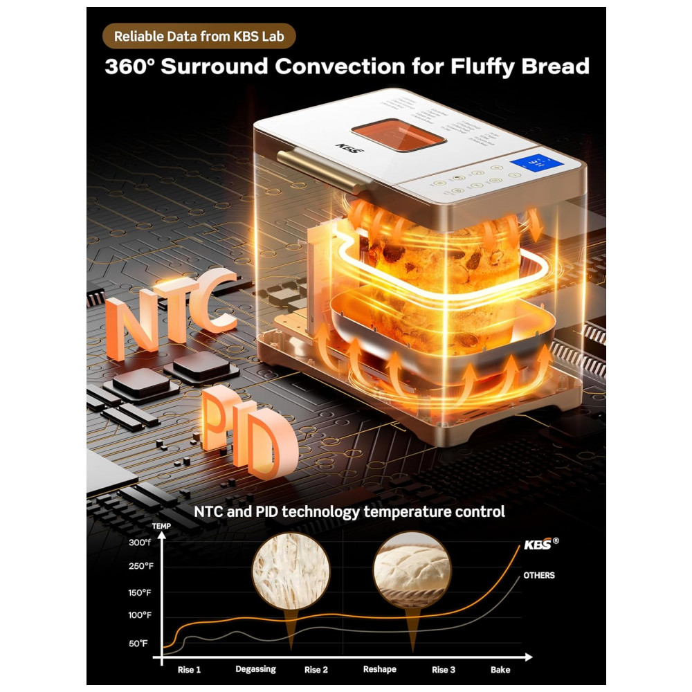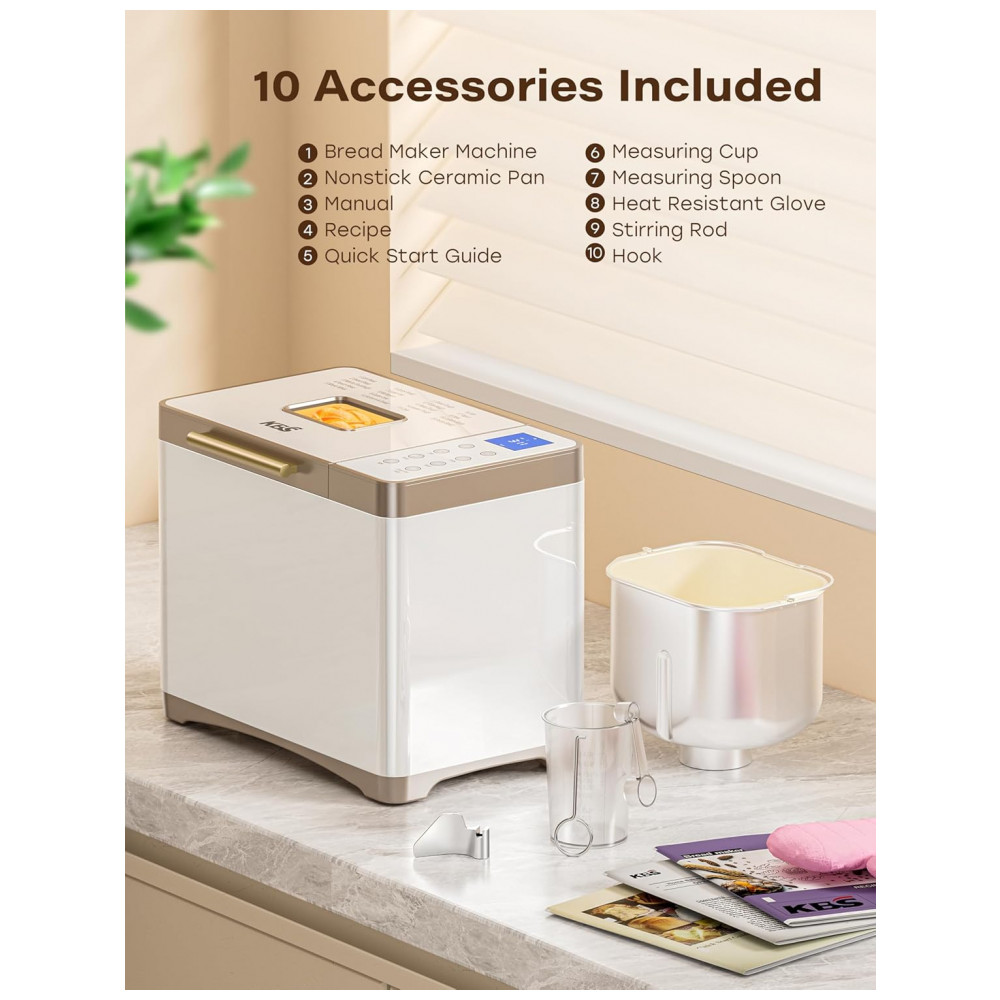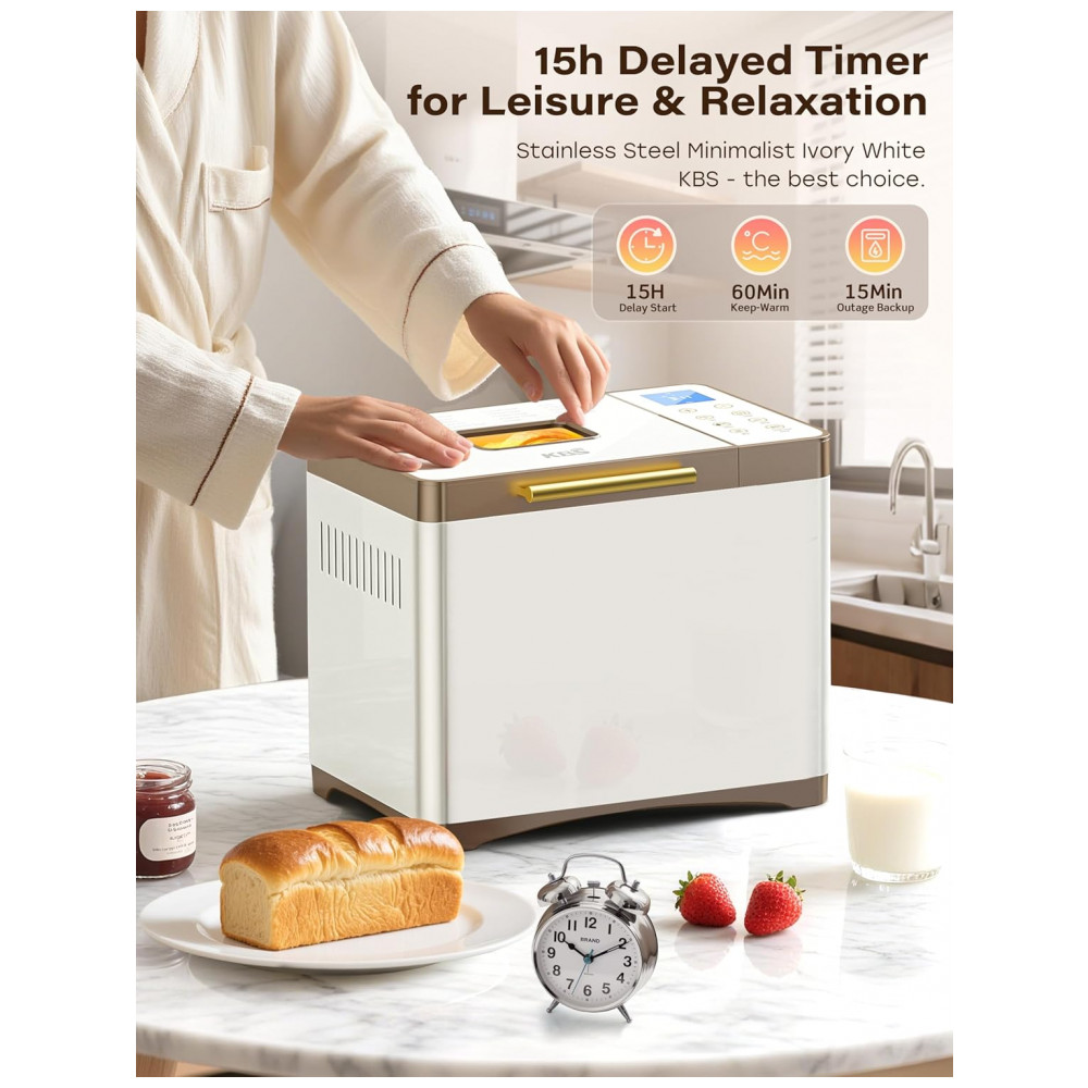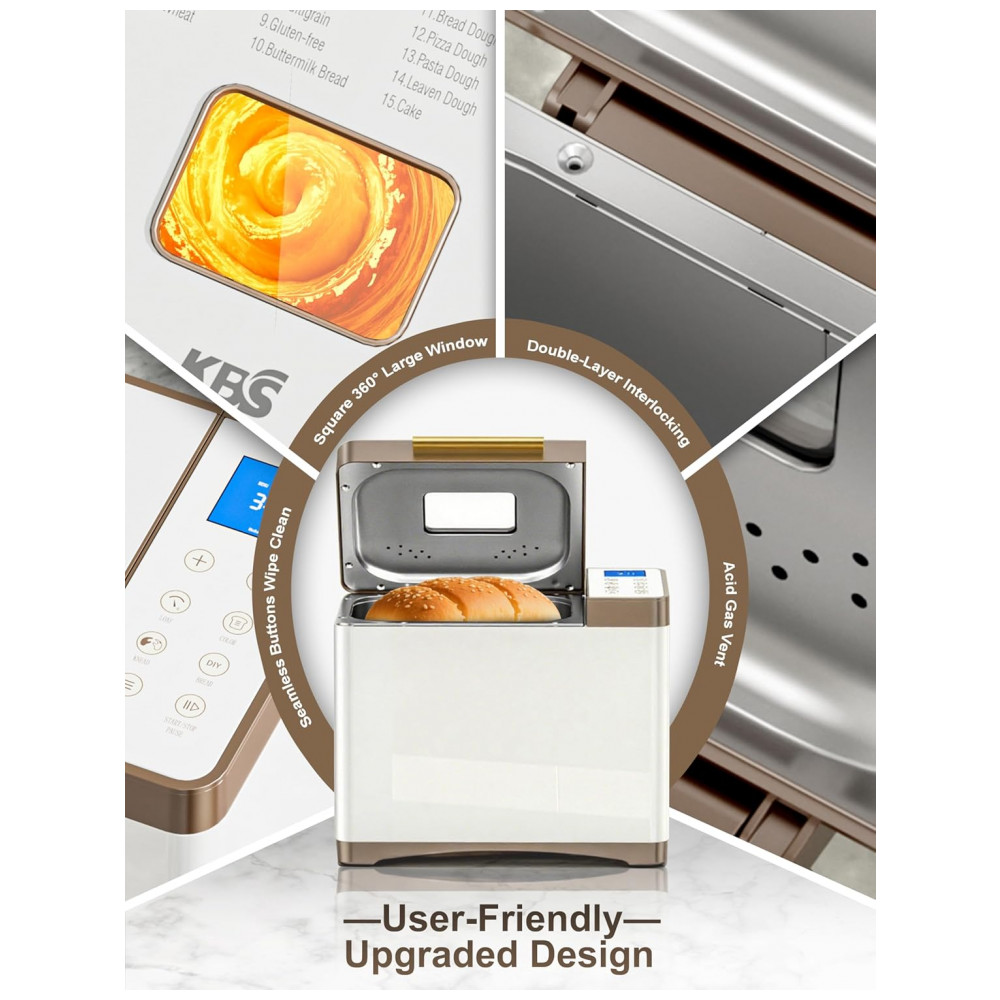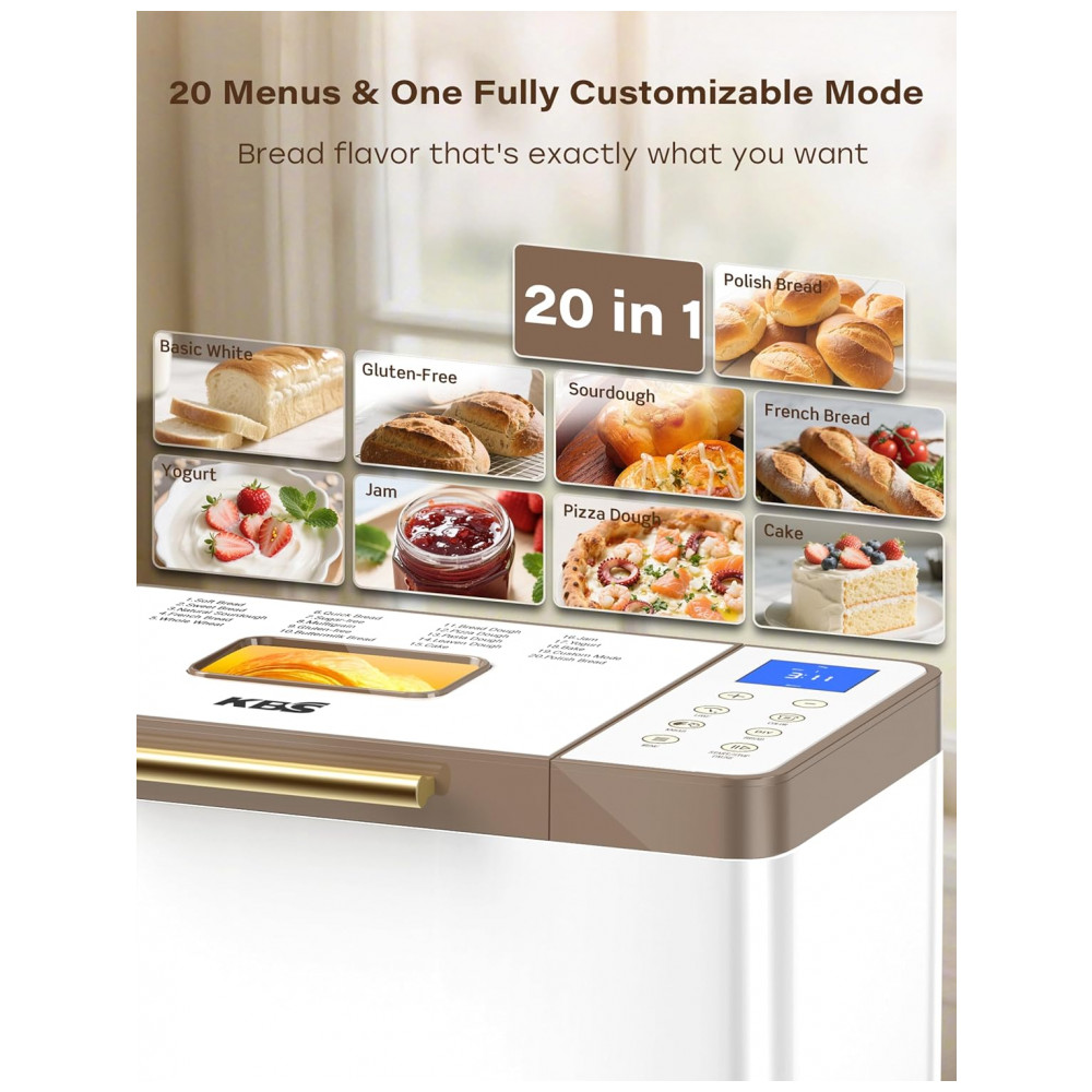 Máquina de Pão KBS 20 em 1 Cerâmica Antiaderente Pá de Aço Inoxidável Painel Touch Timer 15H Capacidade 907 g Voltagem 110V