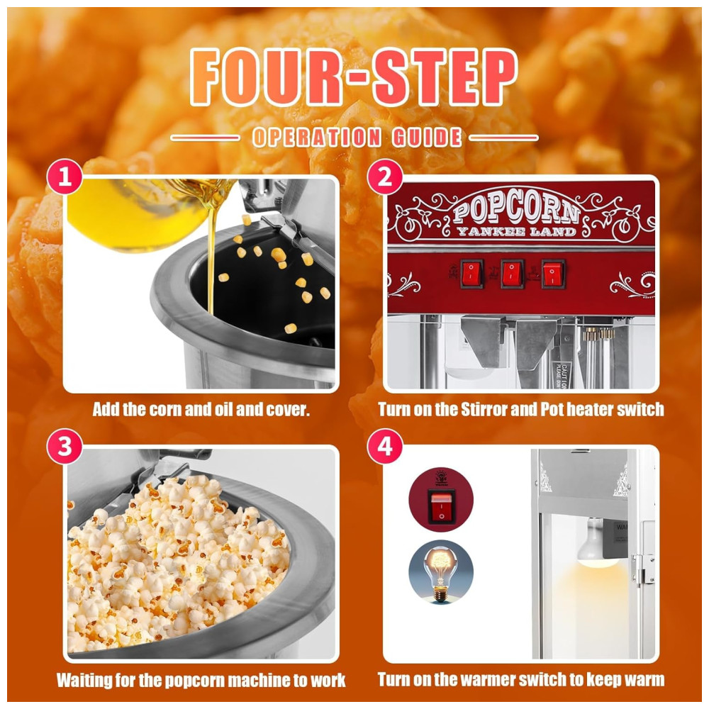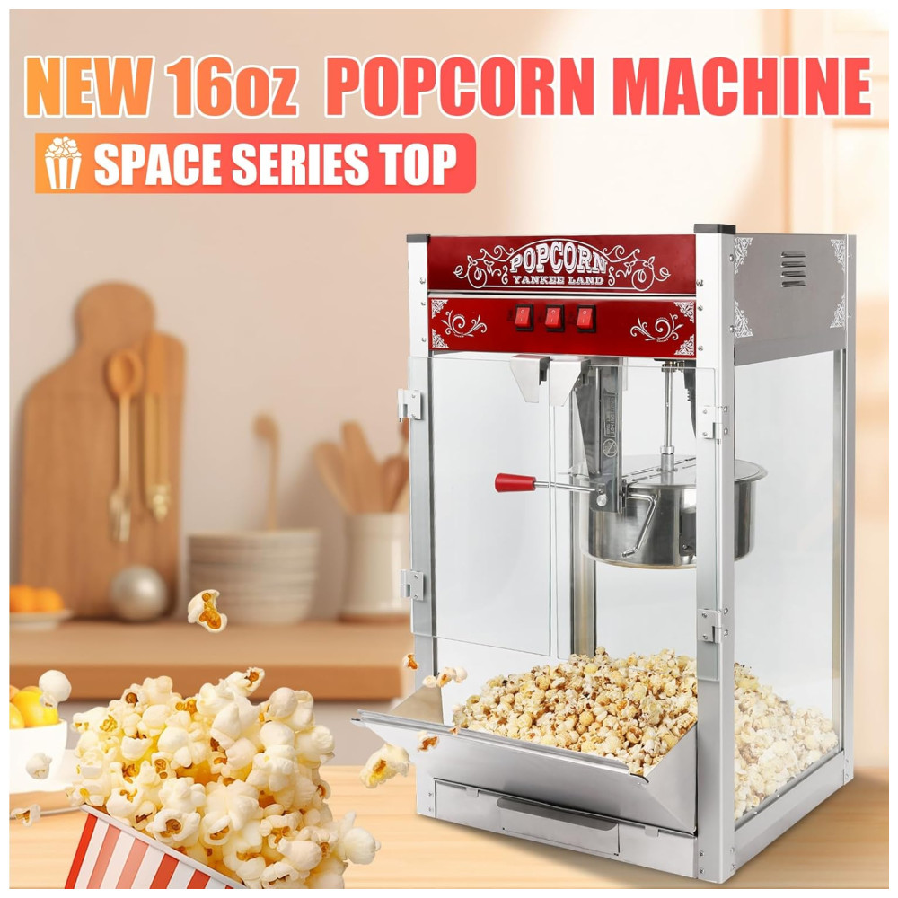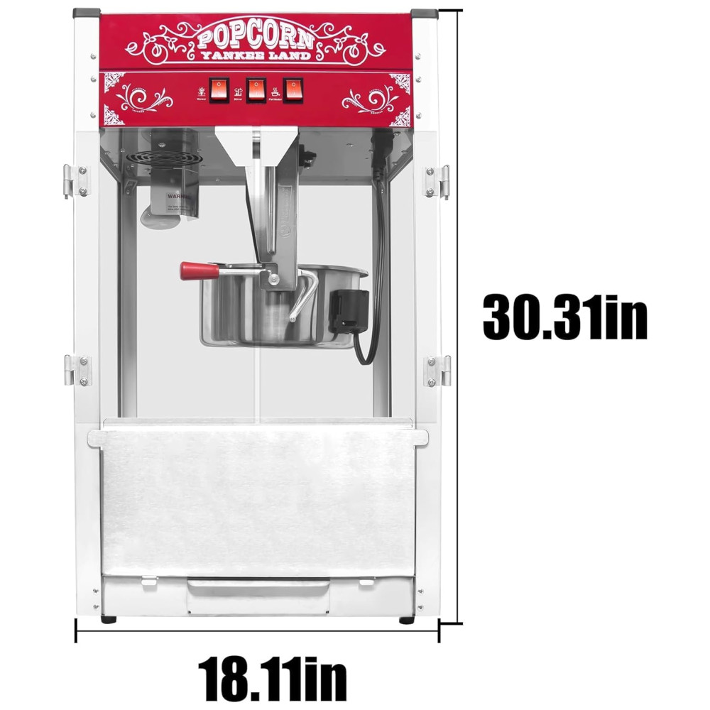 Faça de cada ocasião especial com a máquina de pipoca de alta capacidade de 16 oz. Perfeito para home theaters, festas ou eventos comerciais, esta máquina de pipoca de 16 oz cria deliciosas pipocas frescas com um esforço mínimo. Sua grande capacidade e construção durável a tornam uma adição essencial para qualquer reunião ou empresa. Com alto rendimento, podendo fazer até 7 galões de pipoca por lote, três interruptores independentes controlando o aquecedor de caldeira, agitador e plataforma de aquecimento, esta máquina de pipoca é fácil de operar e perfeita para noites de cinema e eventos. Construída com aço inoxidável 304 e vidro temperado, garantindo a segurança dos alimentos e excelente qualidade. Fácil de limpar com caldeira removível e bandeja de migalhas. Inclui uma colher de pipoca, colher medidora de óleo e colher medidora de milho para uma experiência de pipoca perfeita. Totalmente equipada com um sistema de aquecimento de 1440W e uma caldeira de aço inoxidável de 16 oz, produzindo até 62 xícaras de pipoca por lote, servindo de 16 a 20 pessoas. Perfeito para grandes reuniões, home theaters ou eventos agitados, faz pipocas frescas e quentes de forma eficiente para satisfazer qualquer multidão. Com seu design robusto, essa máquina de pipoca é construída para durar. Com um sistema de controle de 3 interruptores que proporciona operação independente da plataforma de aquecimento, agitador e aquecedor de caldeira, a máquina de pipoca de mesa estilo cinema vem com luz LED embutida que ilumina a pipoca enquanto acrescenta um clima quente e cinematográfico ao seu espaço. Esta máquina de pipoca de estilo vintage de 16 oz mescla estética vintage com funcionalidade moderna. Com garantia de 1 ano, política de devolução de 30 dias e suporte ao cliente 24/7, a marca ELOMBR está comprometida em tornar sua experiência de fabricação de pipoca fácil e agradável!