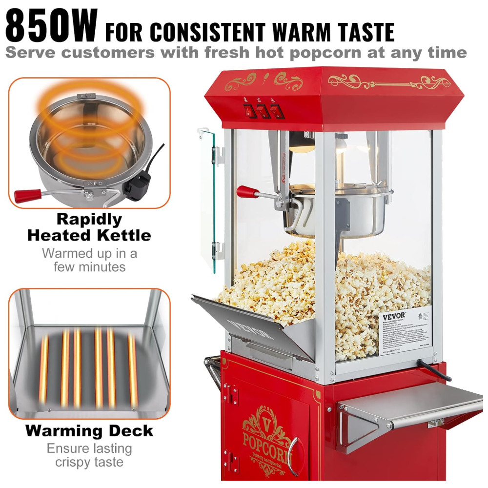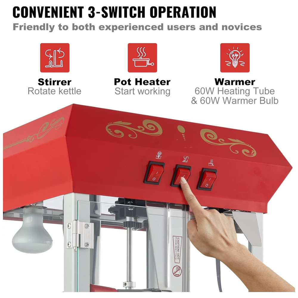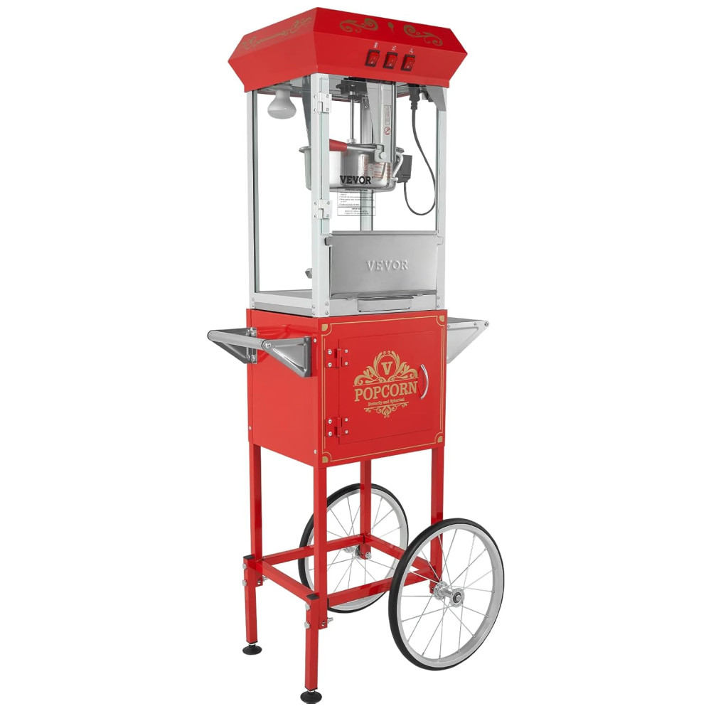 Máquina de Pipoca Comercial VEVOR Chaleira de 227 g Faz 114 Litros de Pipoca por Lote 850 W com Rodas Controle de 3 Interruptores.