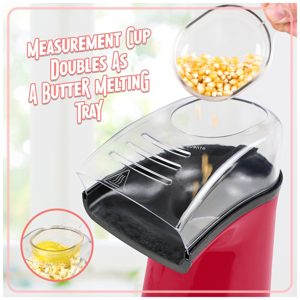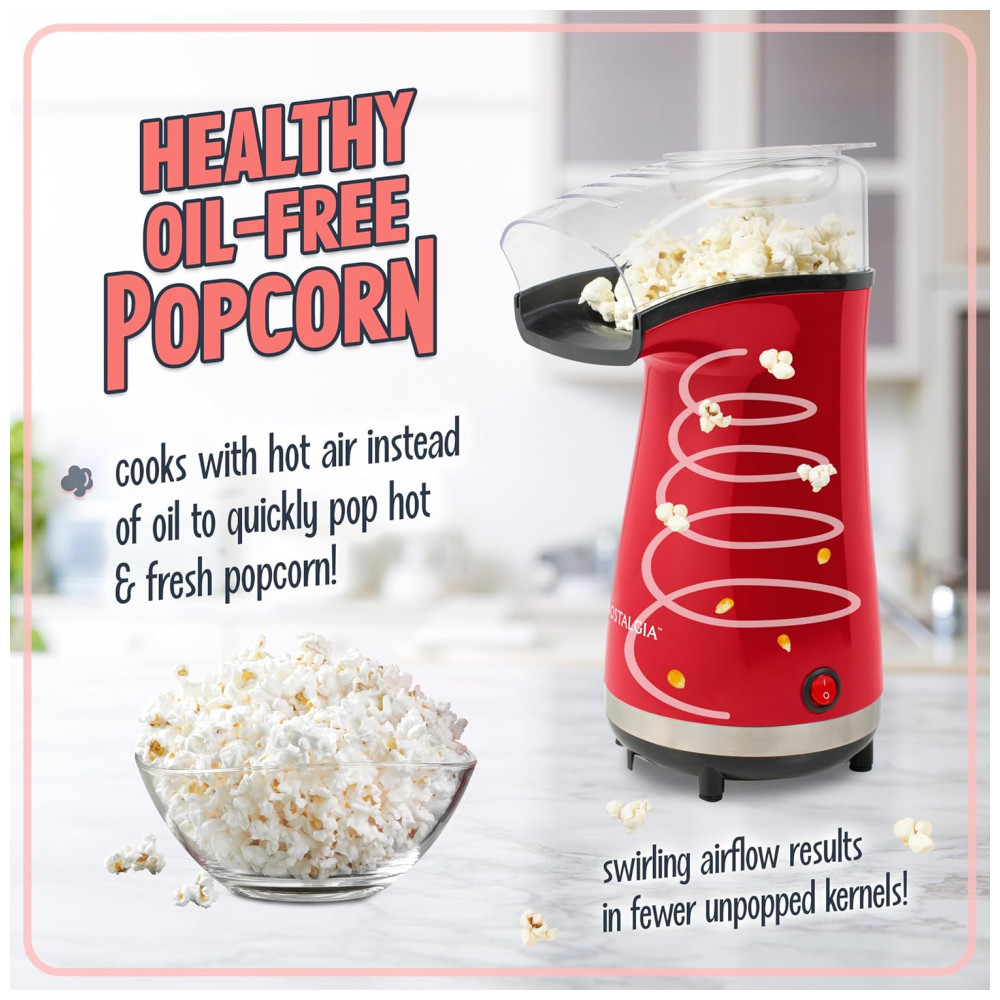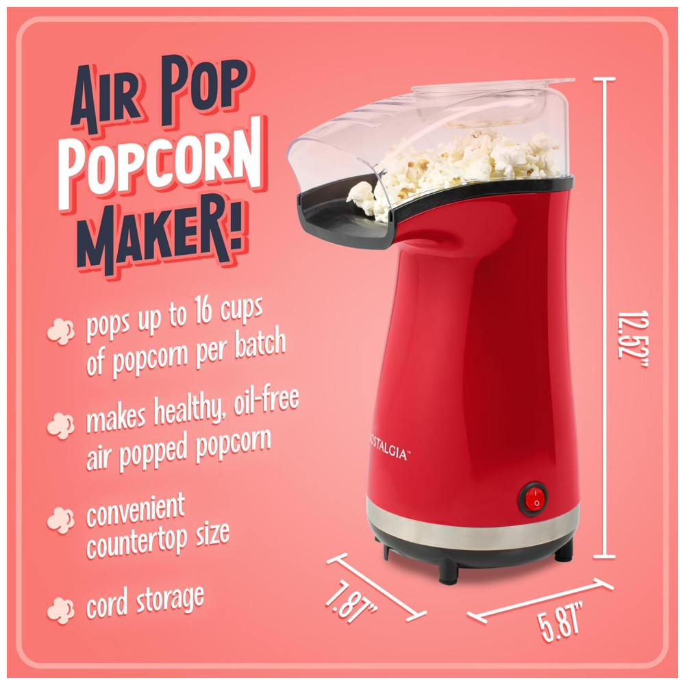 Máquina de Pipoca de Ar Quente Nostalgia 16 Copos: Faça Pipoca Quente e Saudável sem Óleo – Medidor de Milho Incluído – Aço Inoxidável Vermelho
