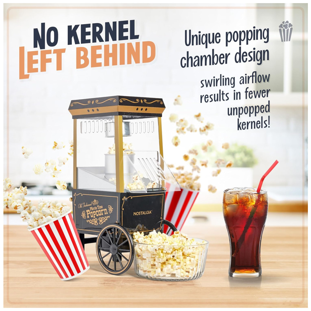 Máquina de Pipoca de Ar Quente Nostalgia estilo cinema 12 xícaras sem óleo com tampa medidora.