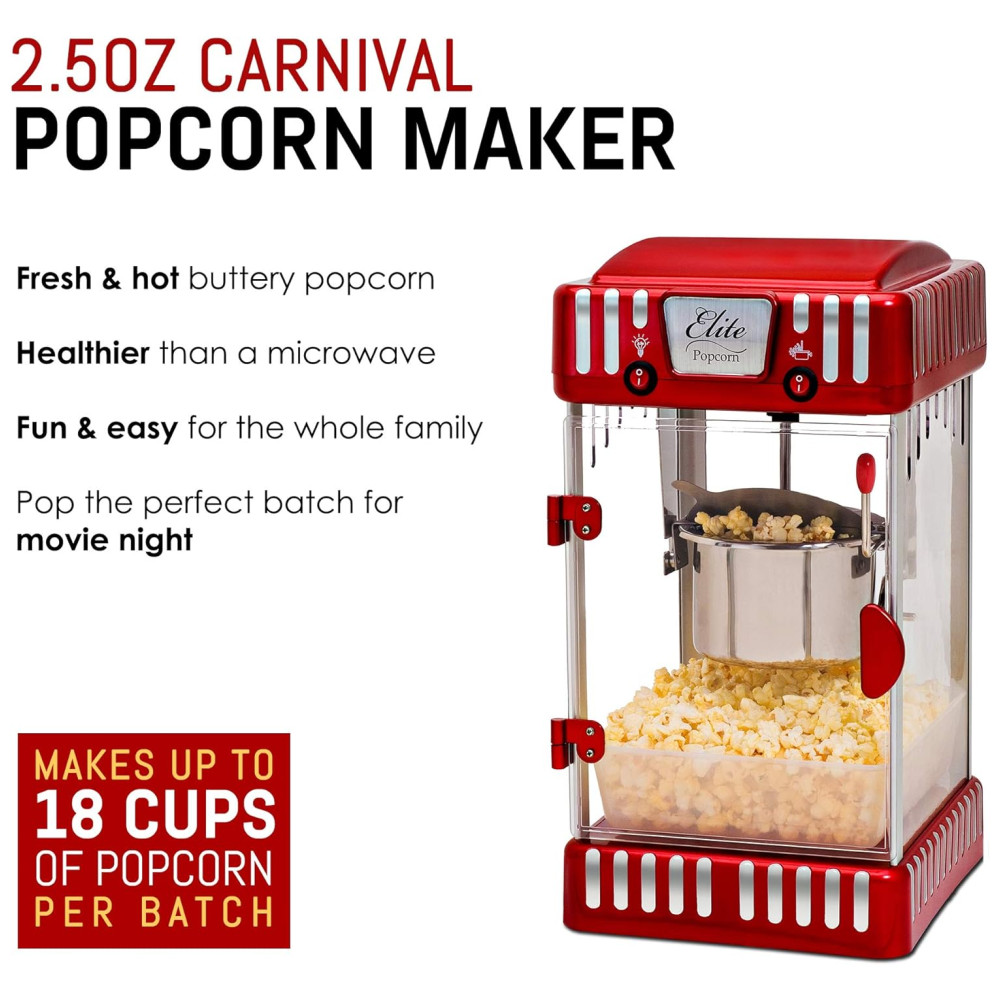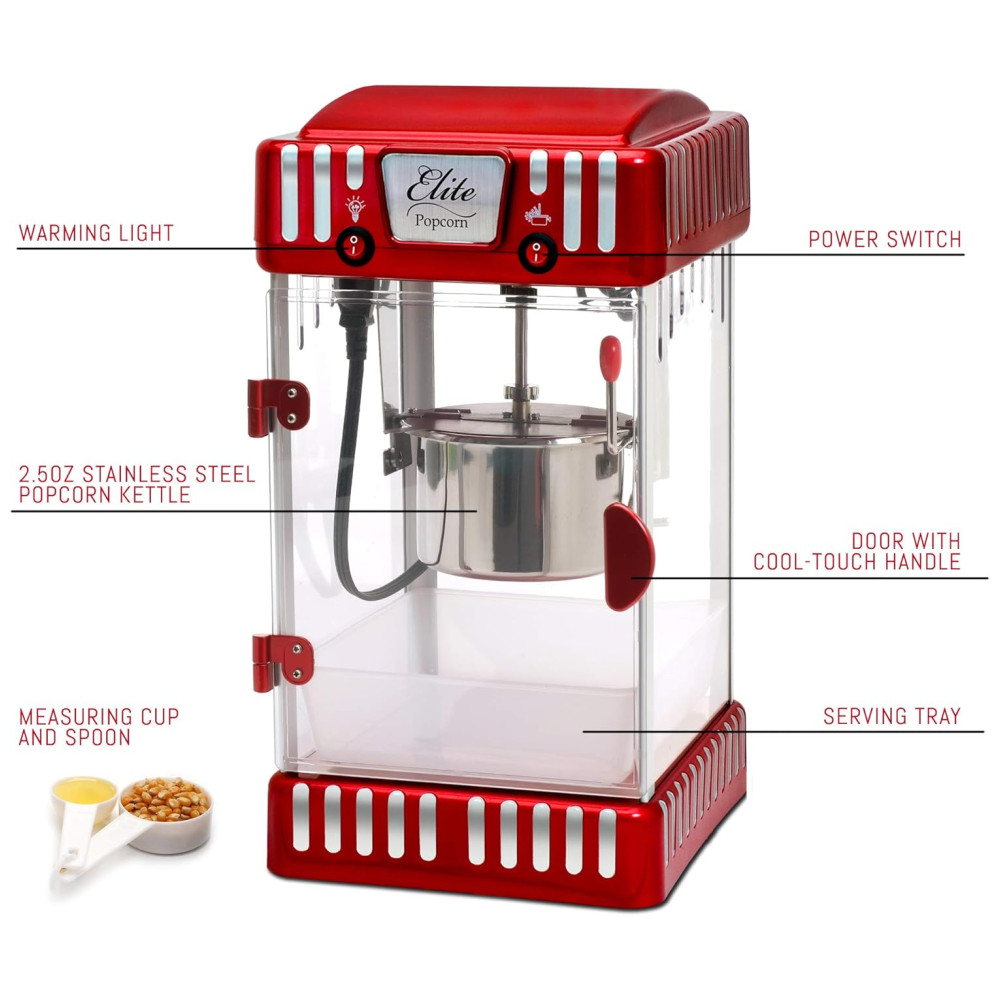 Máquina de Pipoca Elite Gourmet EPM 250 Maxi Matic Estilo Retrô para Mesa de 009g Perfeito para Festas e Eventos