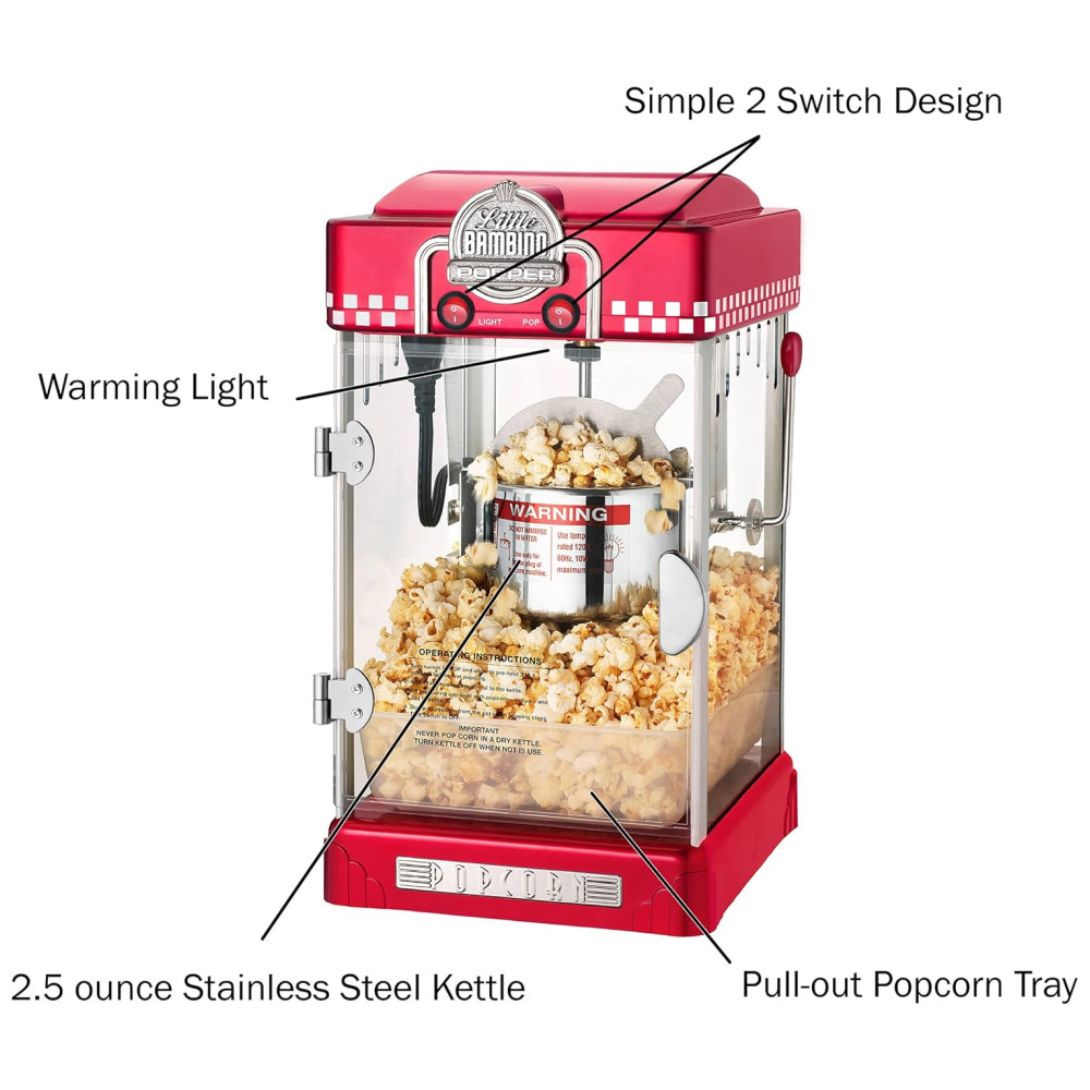 Componentes incluídos: Máquina de pipoca retro GNP Little Bambino 70 g, modelo vermelho