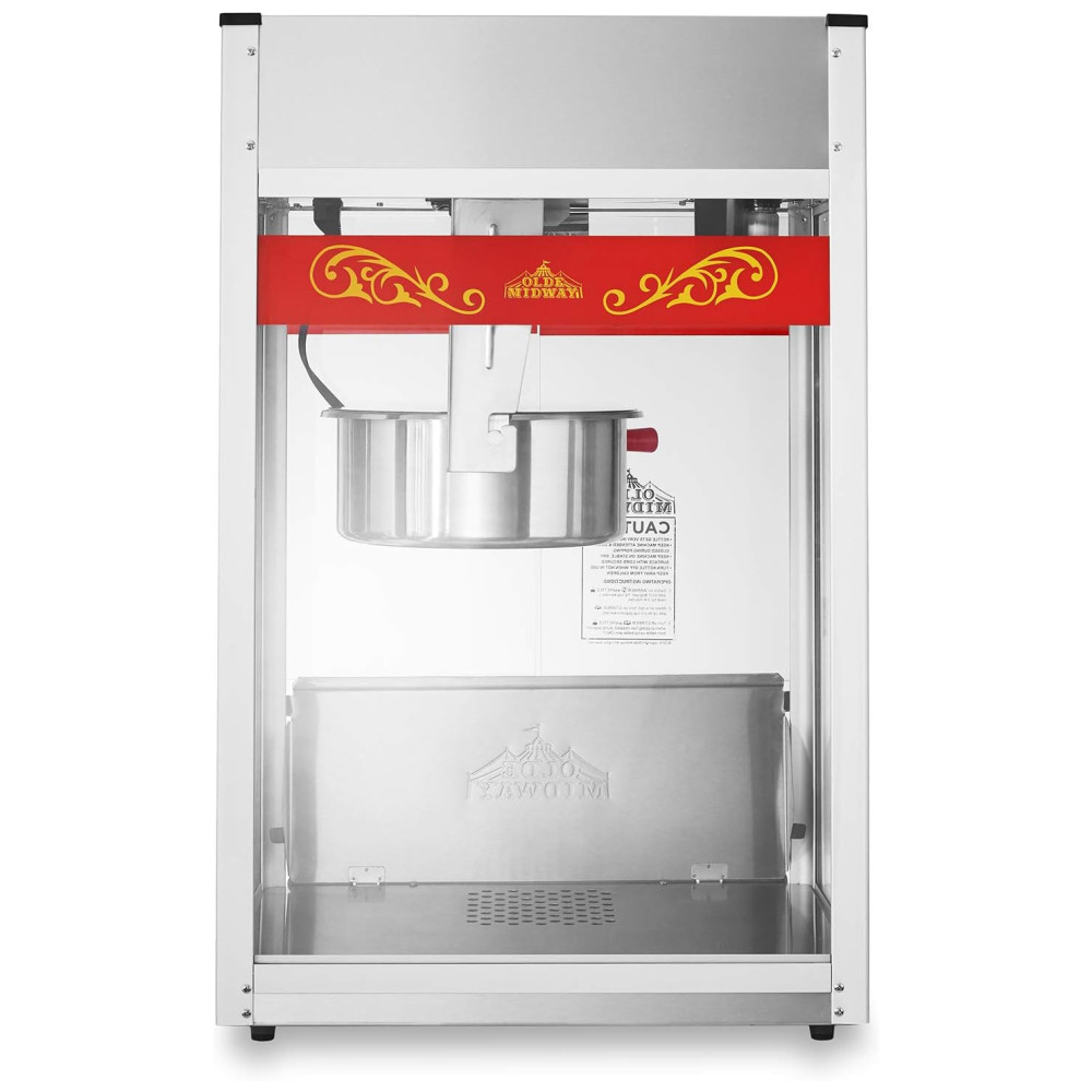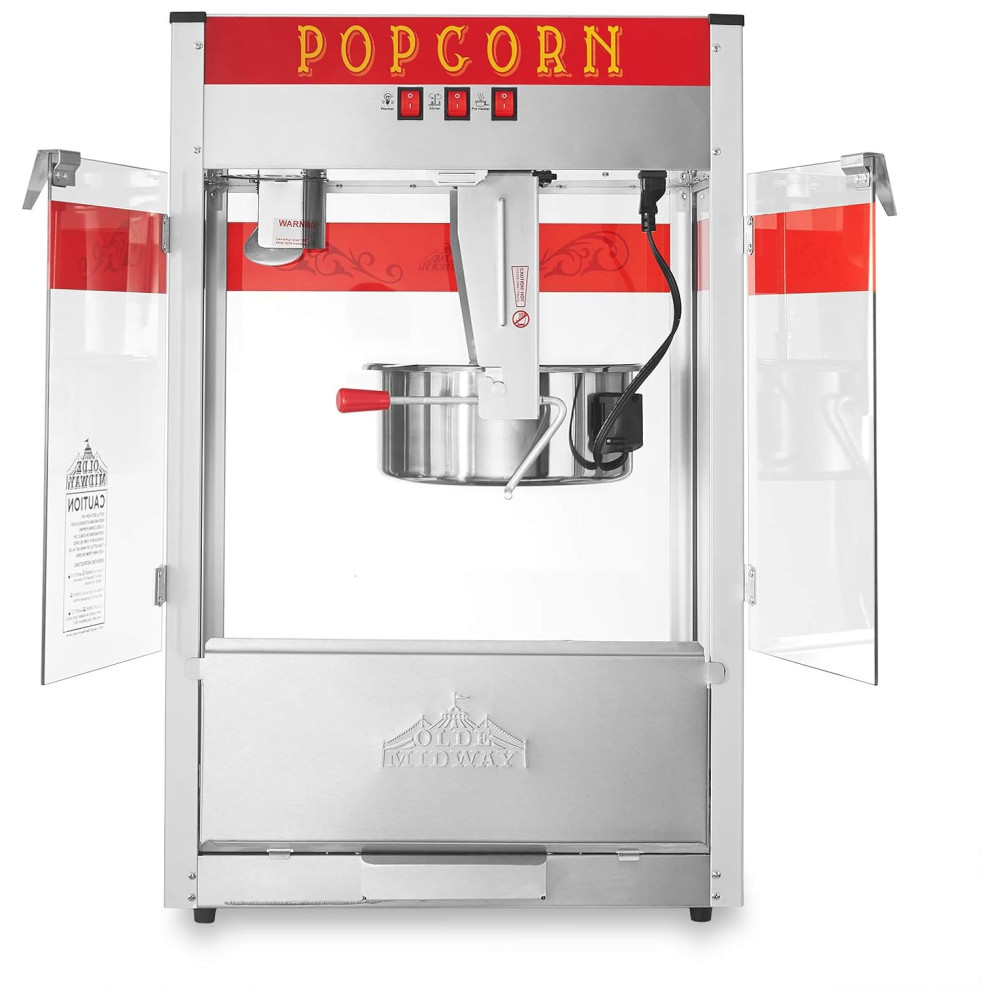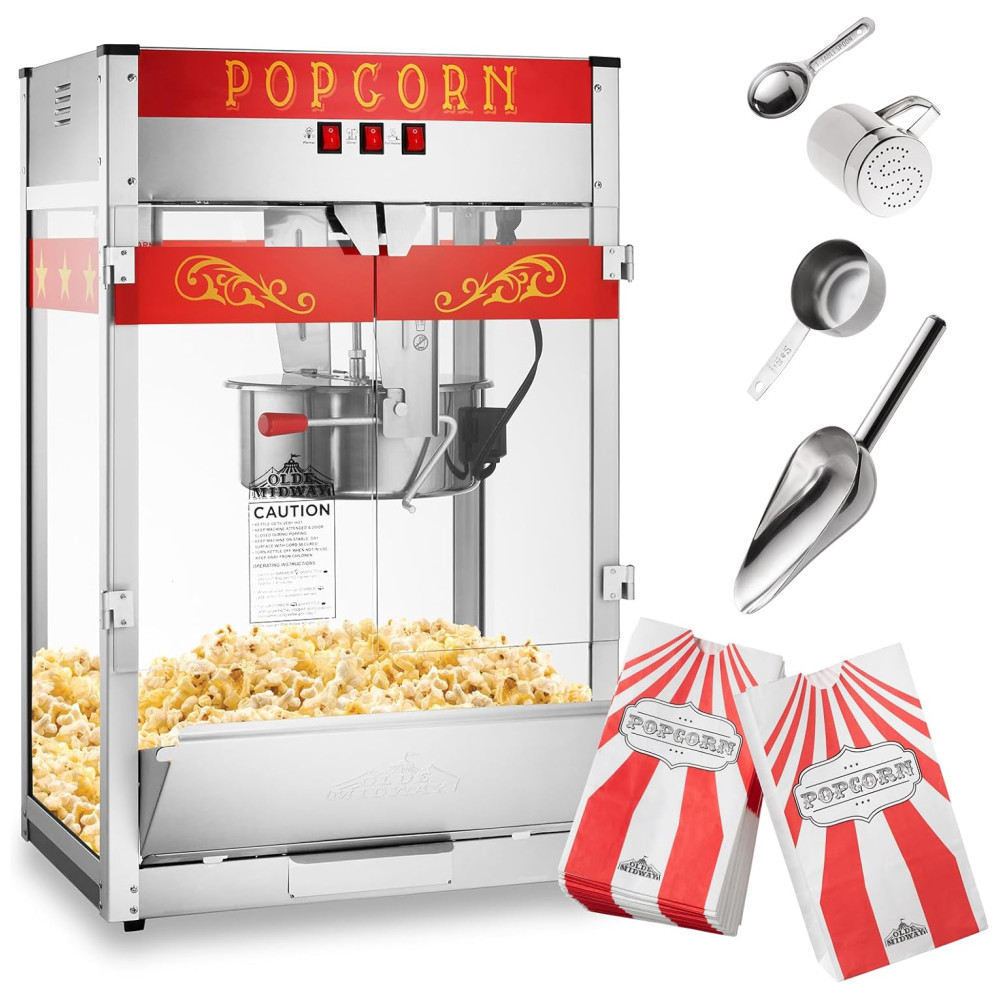 Desfrute de pipoca gourmet estilo cinema em qualquer lugar com a máquina de pipoca comercial Olde Midway. Com um design retrô e recursos modernos, esta popper de pipoca premium é perfeita para eventos como arrecadações de fundos, carnavais, festas, jogos infantis, cinemas domésticos e muito mais. A chaleira de 0,56 gramas pode produzir cerca de 22,74 litros de pipoca por lote para satisfazer grandes multidões. Construída com materiais altamente duráveis, incluindo uma estrutura de aço resistente e paredes de vidro de segurança temperado, esta máquina de pipoca comercial apresenta uma operação conveniente de 3 interruptores, incluindo um aquecedor de luz, agitador e aquecedor de panela. Fácil de limpar com água e sabão neutro, a máquina funciona com um cabo de alimentação padrão dos EUA de 120 volts para configuração rápida e fácil em praticamente qualquer lugar. Acompanha acessórios em aço inoxidável, copo medidor de 12 xícaras, colher de sopa, colher de pipoca e saleiro, além de sacos de pipoca. Esta máquina de pipoca de luxo foi construída para durar e é enviada com estoque de parede dupla e acolchoamento extra para garantir uma entrega segura.