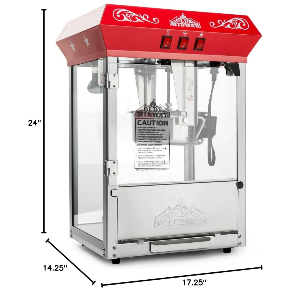 Faça pipoca gourmet estilo cinema em qualquer lugar com a máquina de pipoca de mesa estilo antigo Olde Midway. Com um design retrô, esta máquina de pipoca de qualidade premium é equipada com recursos modernos para operação fácil e conveniente e funcionalidade duradoura. Ideal para adicionar novidades em arrecadações de fundos, festas, jogos da liga infantil e do time do colégio, cinemas domésticos e muito mais, esta chaleira de 0,35 gramas pode produzir cerca de 15,16 litros de pipoca por lote para satisfazer grandes multidões. É um ótimo presente para cinéfilos.