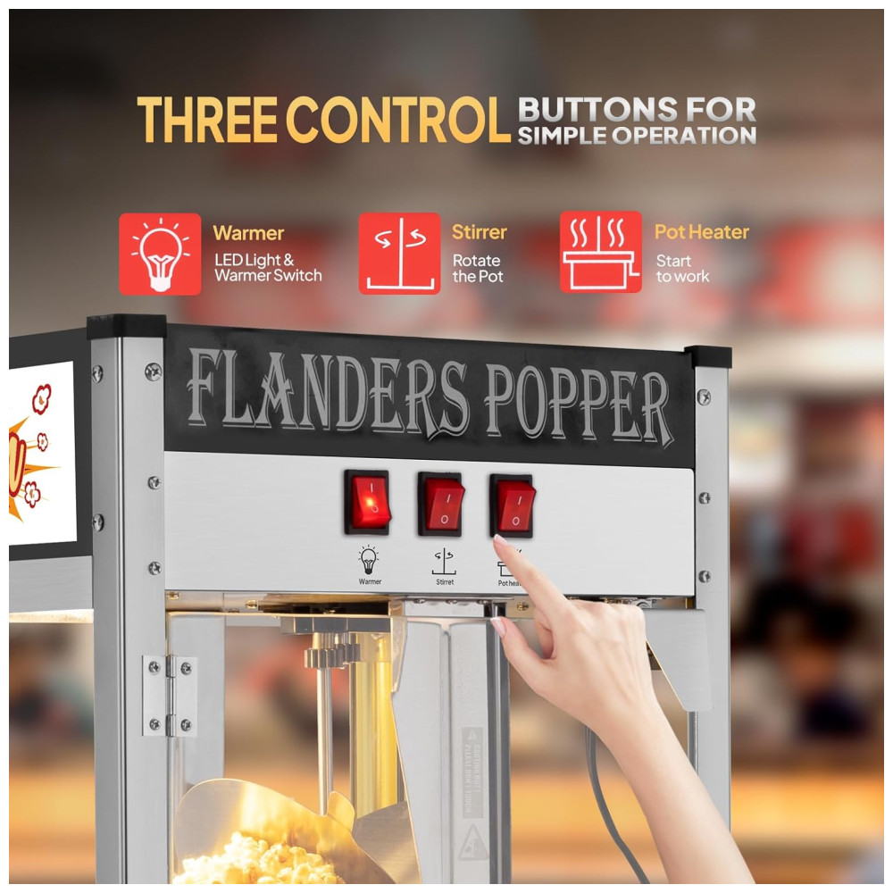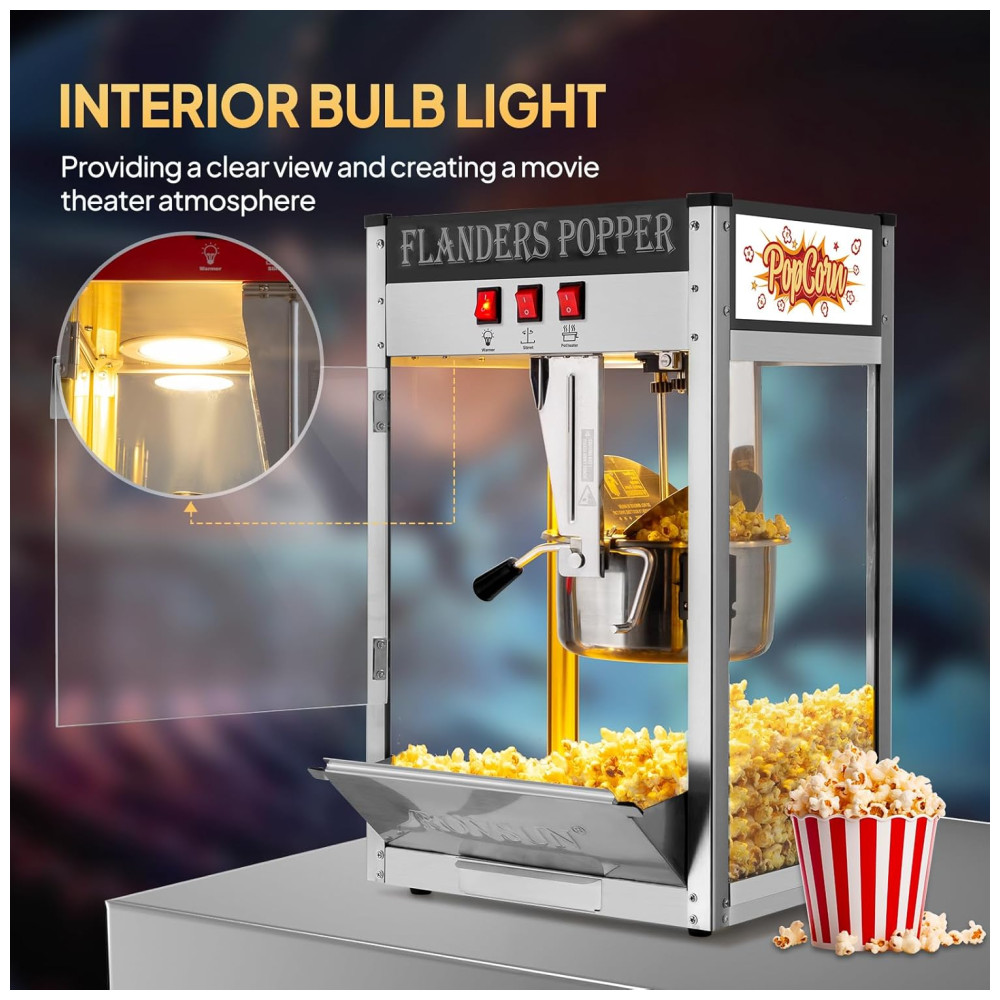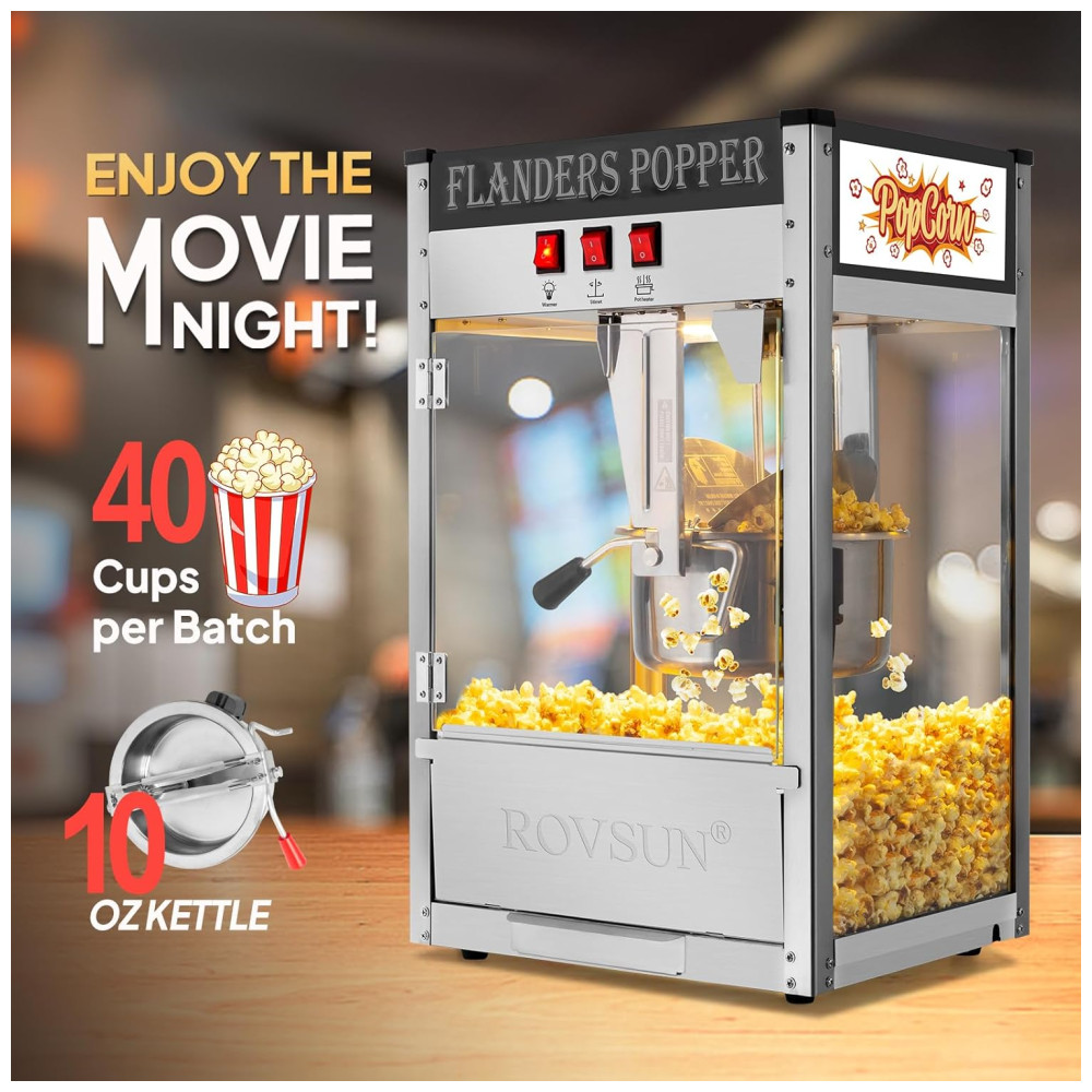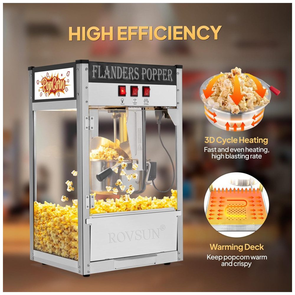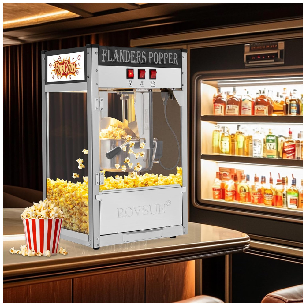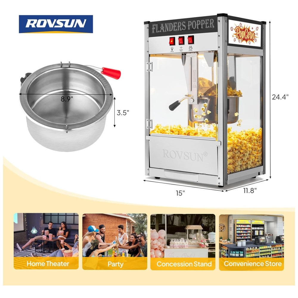 Máquina de Pipoca ROVSUN com Capacidade para 450ml Produz até 15 Litros Fabricante de Pipoca de Bancada Comercial com Pá de Aço Inoxidável