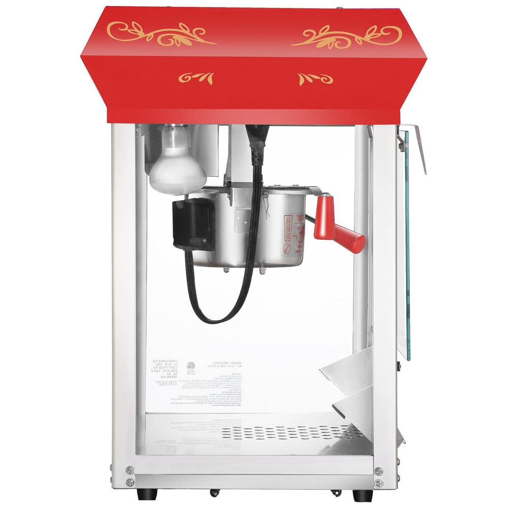 Fácil de Usar: Com zonas alimentares em aço inoxidável e vidro temperado, esta máquina torna o preparo da pipoca rápido e simples. O design de dois interruptores permite usar o aquecedor da panela e o misturador, a luz superior e o deck de aquecimento independentemente um do outro.