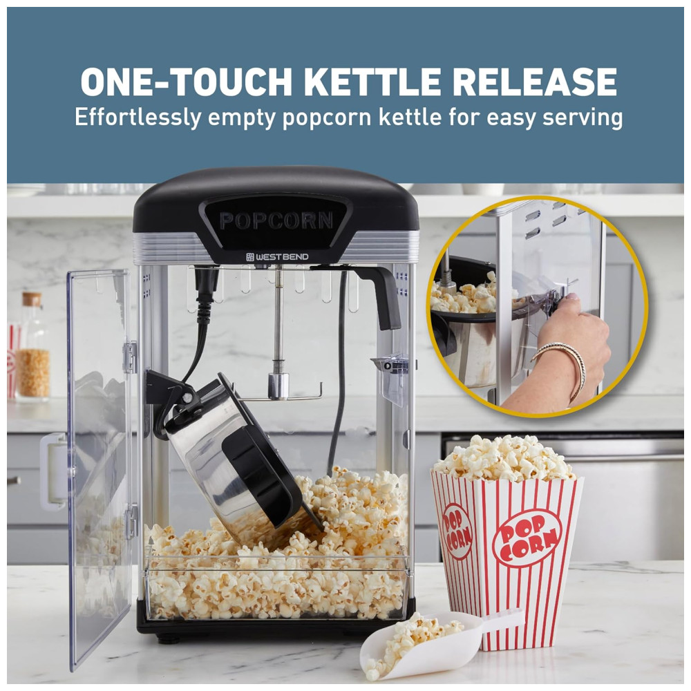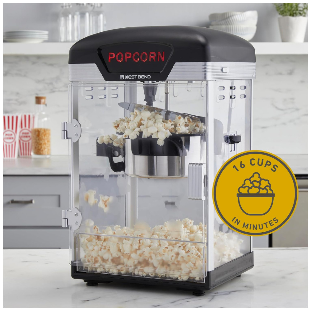 Máquina de Pipoca West Bend Stir Crazy 47 L com Panela Antiaderente e Concha Ideal para Pipoca Gourmet. Perfeita para Sessões de Cinema em Casa.
