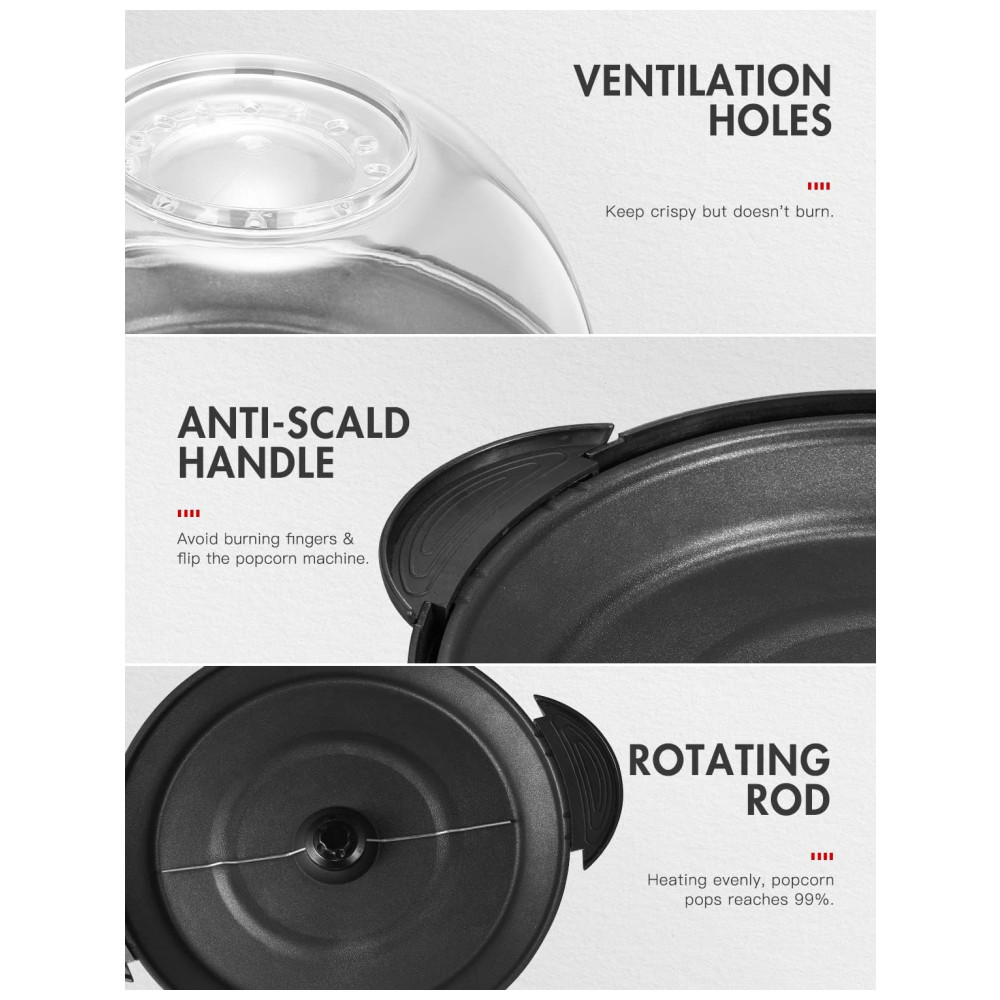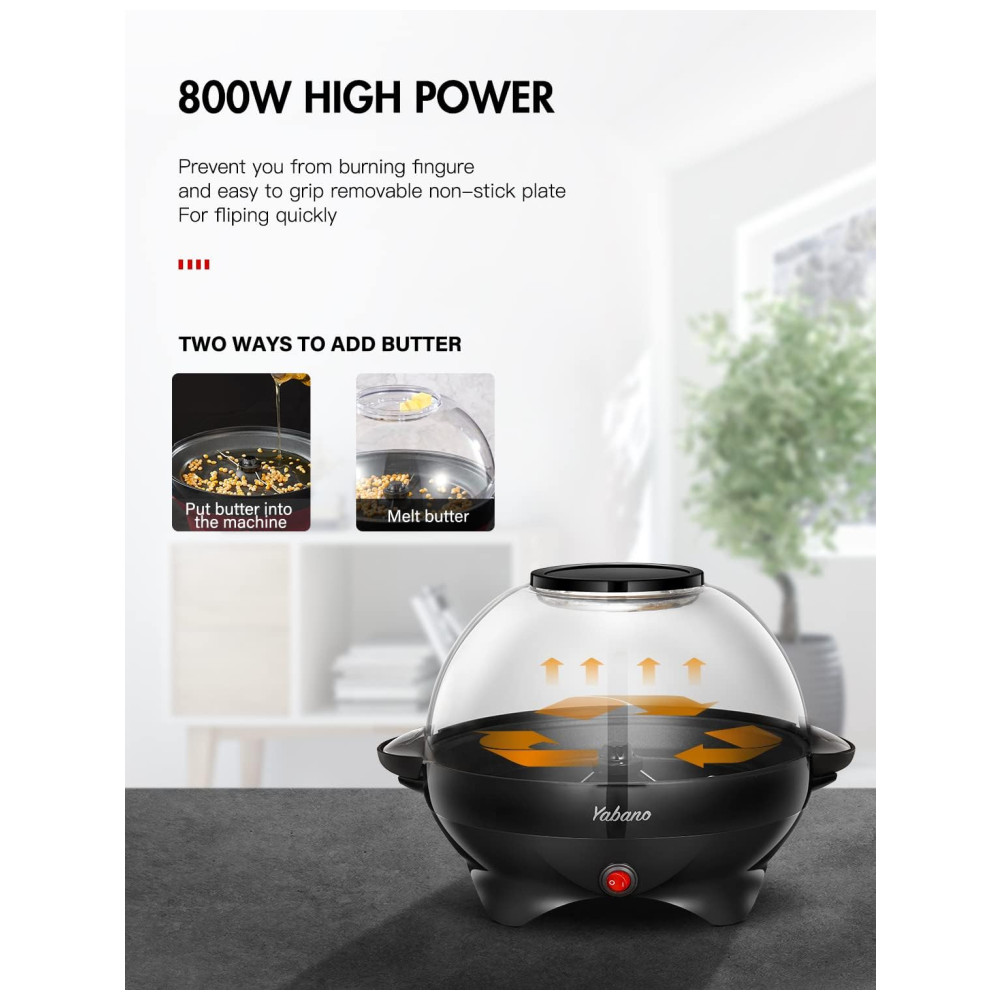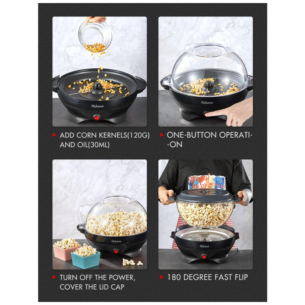 Chegou a hora da pipoca! Com a máquina de pipoca Yabano, você pode fazer 6 litros de pipoca de uma só vez para toda a família, desfrutando de momentos felizes em casa. A tecnologia Quickheat permite que as pipocas estourem 40% mais rápido do que as pipoqueiras tradicionais, sem necessidade de pré-aquecimento. O mexedor elétrico garante um aquecimento uniforme, resultando em pipocas mais crocantes e um maior rendimento. Além disso, a máquina pode fazer pipoca com até 100% do milho colocado, resultando em pipocas crocantes sem queimar. Sem conservantes, a pipoca quente e fresca promove um estilo de vida mais saudável. Você pode criar pipocas de chocolate, manteiga, salgadas, entre outros sabores, e até mesmo adicionar castanhas torradas. A placa antiaderente removível facilita a limpeza, podendo ser lavada na lava-louças, e a tampa transparente 2 em 1 também pode ser usada como tigela de servir. Com design especial, os orifícios de ventilação na tampa evitam o acúmulo de vapor, garantindo que a pipoca fique crocante. Os pegadores com toque frio evitam queimaduras ao manusear a placa de preparo invertida.