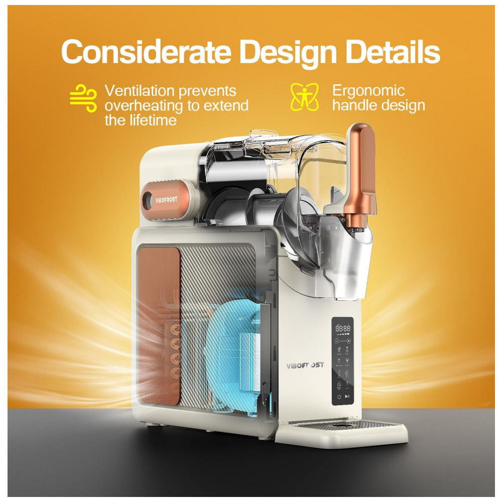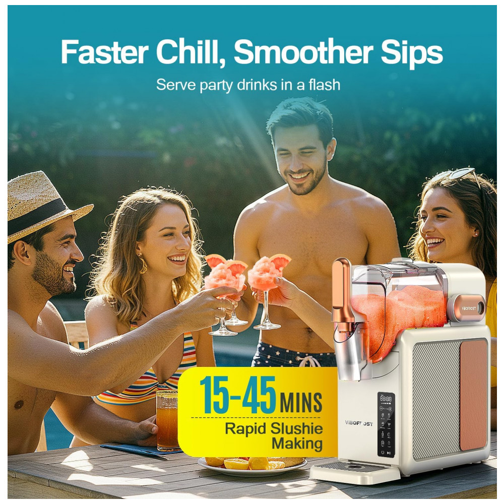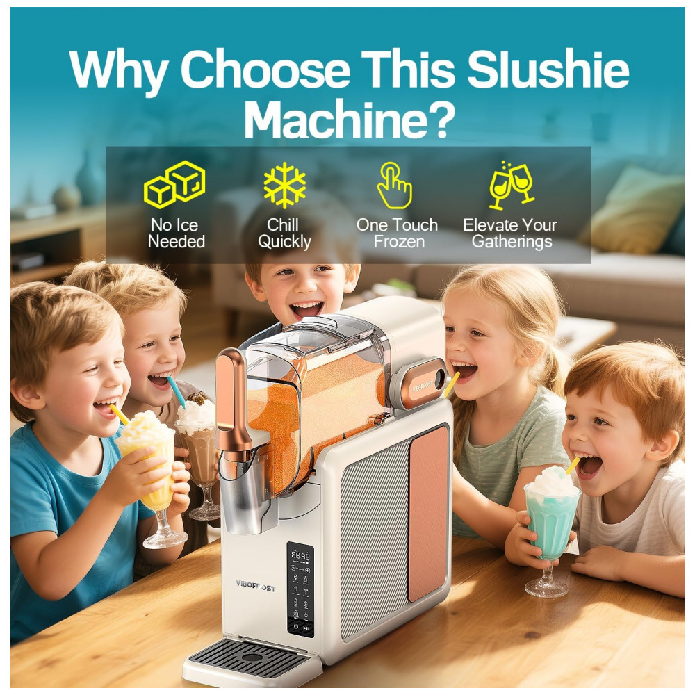 Experimente o poder da inovação com a Máquina de Frozen VIBOFROST. Seu avançado sistema de resfriamento dispensa o uso de gelo, garantindo bebidas ultrageladas e suaves a cada uso. Com capacidade de 2.200ml, é perfeita para festas e encontros. Com mais de 30 receitas fáceis, você pode preparar Margaritas, Frappés, Coquetéis, Milkshakes, Refrigerantes e muito mais. A tela inteligente e a interface intuitiva tornam a preparação dos slushies ainda mais fácil. Além disso, a função Autolimpeza facilita a manutenção, bastando adicionar água e ativar a limpeza automática. Surpreenda-se com a qualidade e o design excepcional da VIBOFROST, garantindo momentos refrescantes para compartilhar com amigos e familiares.