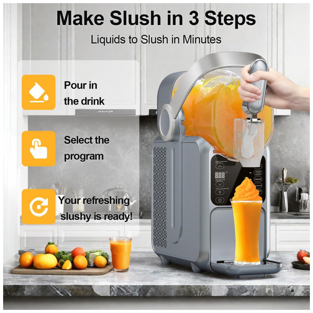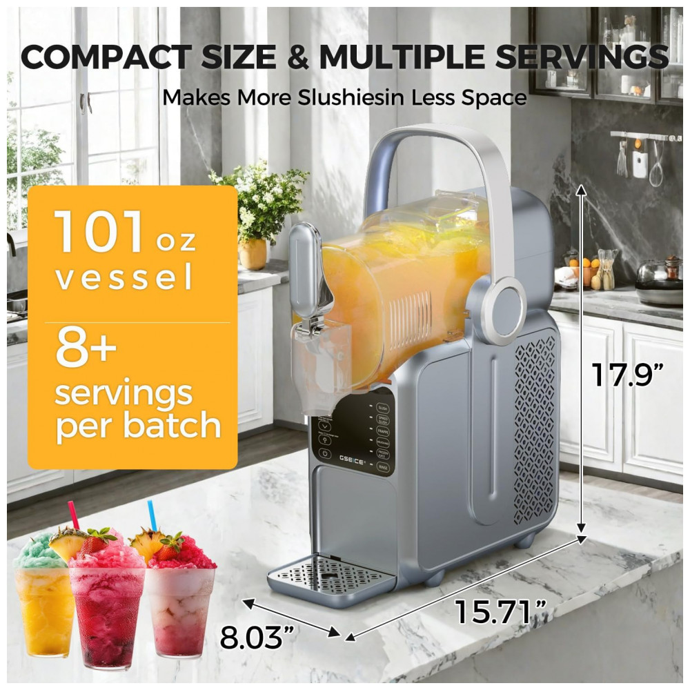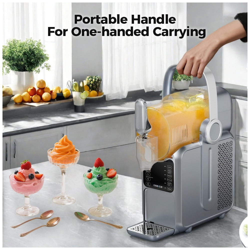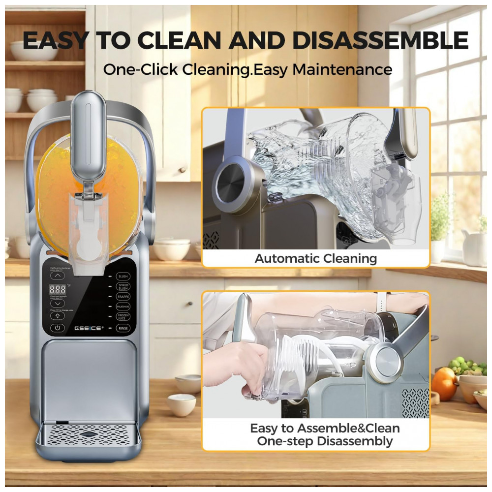 Chegou a hora de ter sua própria máquina de frozen em casa! Com a Máquina de Frozen da GSEICE, você não precisa mais ocupar espaço no congelador com gelo. Com capacidade de 2,9 litros e 5 modos pré-definidos, como Frozen, Frappé, Milkshake e Suco Congelado, você terá sempre a bebida gelada perfeita ao alcance de um toque. Com a exclusiva tecnologia de Resfriamento Rotacional 360, ela transforma líquido em frozen em 15 a 60 minutos, dependendo do conteúdo. O Display de Temperatura em Tempo Real permite ajustar a temperatura para o sabor ideal. Leve e com alça portátil, é ideal para festas no quintal e encontros familiares. Fácil de limpar, possui função de enxágue e tanque removível. Aproveite a praticidade e a diversão de fazer seus próprios frosés, margaritas e milkshakes em casa!