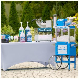 Atraia uma multidão por onde quer que vá com esta unidade móvel perfeita para qualquer local. Com um potente motor de 13,2 cv, ela processa até 226 kg. de gelo por hora. Possui porta de vidro temperado e painéis de acrílico com estrutura de alumínio durável. O carrinho de aço resistente possui rodas traseiras de 40,64 cm, chifre de alumínio fundido resistente, empurrador e cabeça de corte. Fundo inclinado com válvula de drenagem frontal e mangueira de drenagem. Com capacidade para armazenar até 18,14 kg de gelo processado, essa máquina de raspadinha de alta capacidade processa eficientemente até 226 kg de gelo por hora, permitindo atender aos momentos de maior movimento. O carrinho incluso oferece uma maneira excelente de exibir seus sorvetes raspados prontos para consumo e organizar xaropes e suprimentos. Seus clientes certamente vão adorar o design clássico e festivo em aço revestido de pó azul. O carrinho possui uma prateleira lateral perfeita para preparar ingredientes, armazenar xaropes ou expor copos e colheres para venda rápida. Com um botão de reinicialização de segurança, um fundo inclinado, válvula de drenagem frontal e mangueira de drenagem, a limpeza é fácil. Esta unidade ajudará você a servir deliciosas e refrescantes raspadinhas durante todo o verão! As portas de vidro temperado e os painéis de acrílico de alta visibilidade, assim como o dispensador removível de copos e decalque, ajudam a promover o gelo recém-processado. O chifre, cabeça de corte e empurrador de alumínio fundido, juntamente com as lâminas de aço inoxidável, oferecem uma construção durável garantida para durar. As grandes rodas traseiras de 40,64 cm e a área de armazenamento na parte inferior do carrinho tornam esta unidade móvel prática e versátil. A poderosa máquina de 13,2 cv garante que ela possa atender à demanda, enquanto a pá de aço inoxidável de 68 oz. proporciona serviço fácil e higiênico. Requer conexão elétrica de 110V para operação.