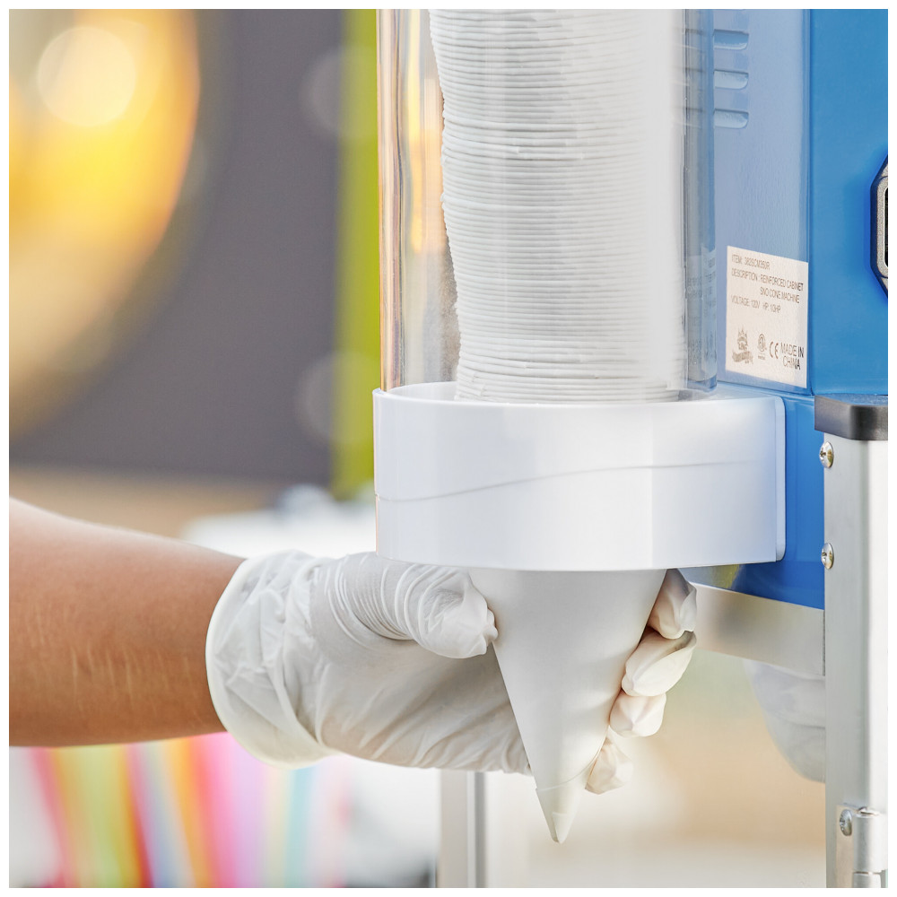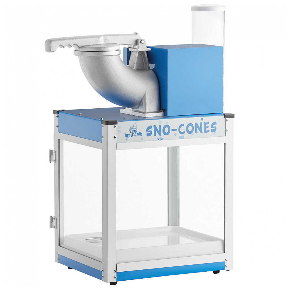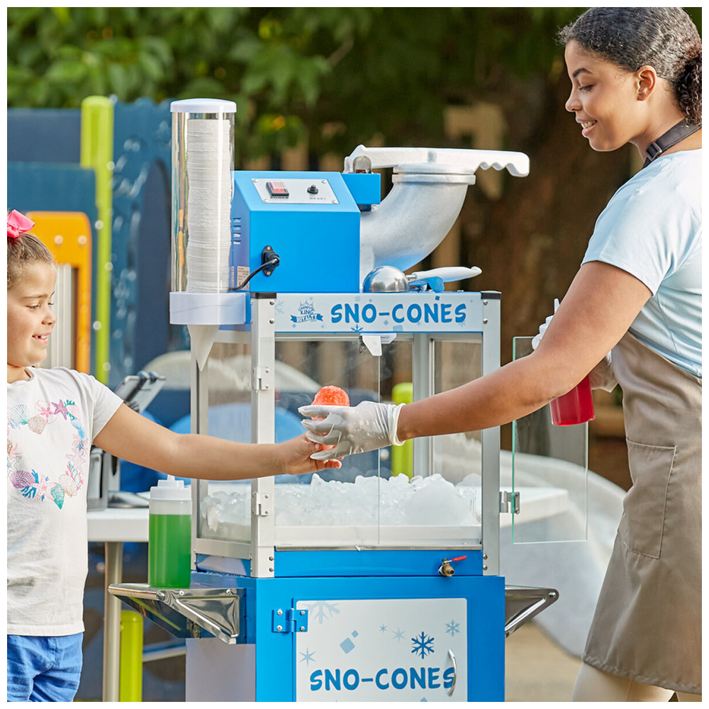 A Máquina de Raspadinha Carnival King Royalty Series SCM350R é uma adição incrível para barracas de alimentação, lanchonetes, sorveterias ou carrinhos de feira. Com um motor potente de 0,338 cv, ela processa até 227 kg de gelo por hora. Possui uma porta de vidro temperado de alta visibilidade, painéis de acrílico e estrutura de alumínio resistente. Seu design robusto inclui chifre de alumínio fundido, cabeça de corte e empurrador com cabo ergonômico. Com capacidade para até 40 lb (aproximadamente 18 kg) de gelo processado, você terá flexibilidade para armazenar gelo extra e atender os pedidos rapidamente nos dias mais movimentados. As portas de vidro temperado, painéis de acrílico e dispensador de copos removível ajudam na exposição do gelo recém-processado. As lâminas de aço inoxidável e o botão de reinício de segurança garantem durabilidade e proteção aos operadores. Além disso, a inclinação inferior, válvula de drenagem frontal e mangueira de drenagem facilitam a limpeza. Com esta máquina, você poderá servir deliciosas raspadinhas o verão todo!
