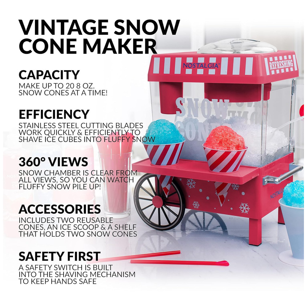 KITS DE CONE DE NEVE NOSTALGIA A unidade funciona perfeitamente com todos os kits de cone de neve Nostalgia experimente o Kit de Cone de Neve SCK3, Xaropes de Cone de Neve SCS160 ou Canudos e Copos SCSTRAWCUP20.