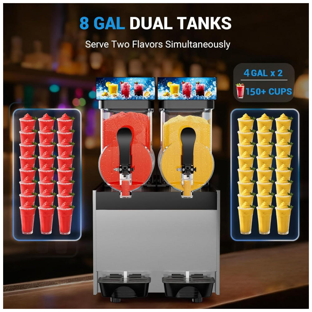 Máquina de Raspadinha Comercial 2 Tanques de 15 Litros Cada Máquina de Margarita Comercial com Luz LED Ideal para Bar Restaurante Festa Ecojoy