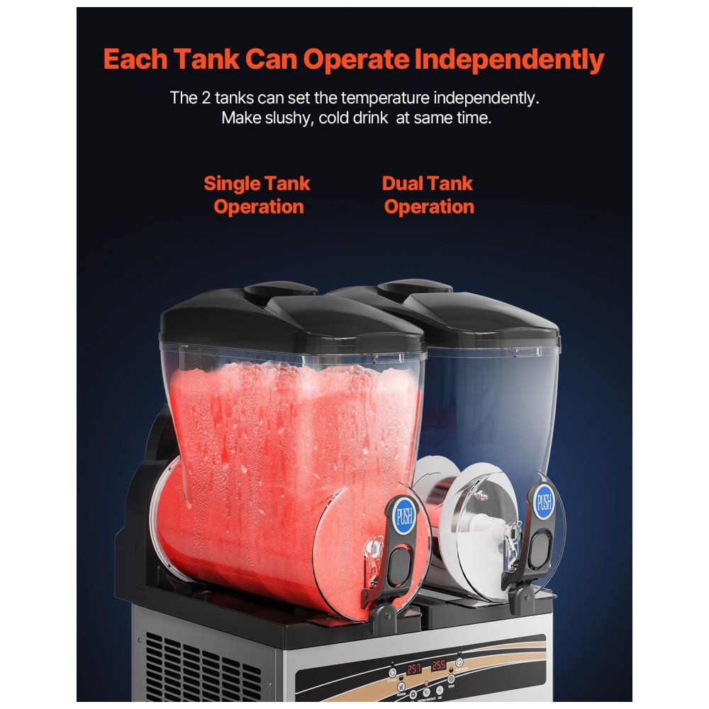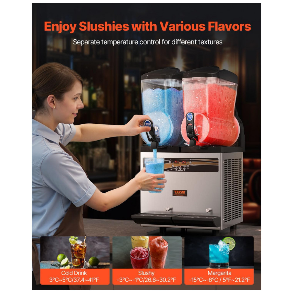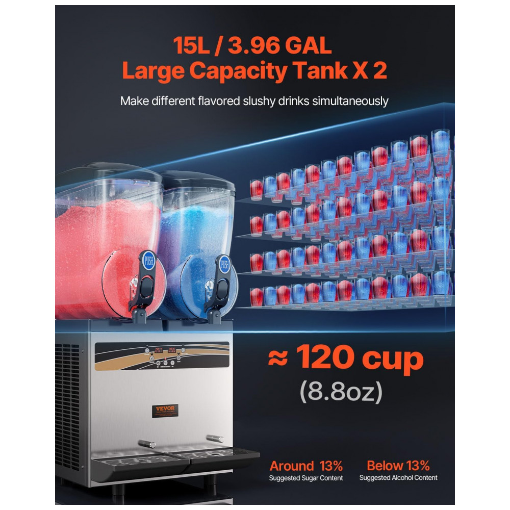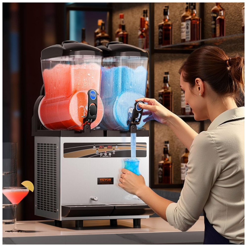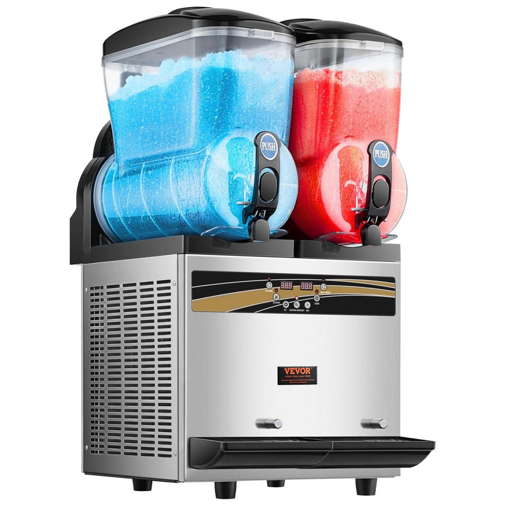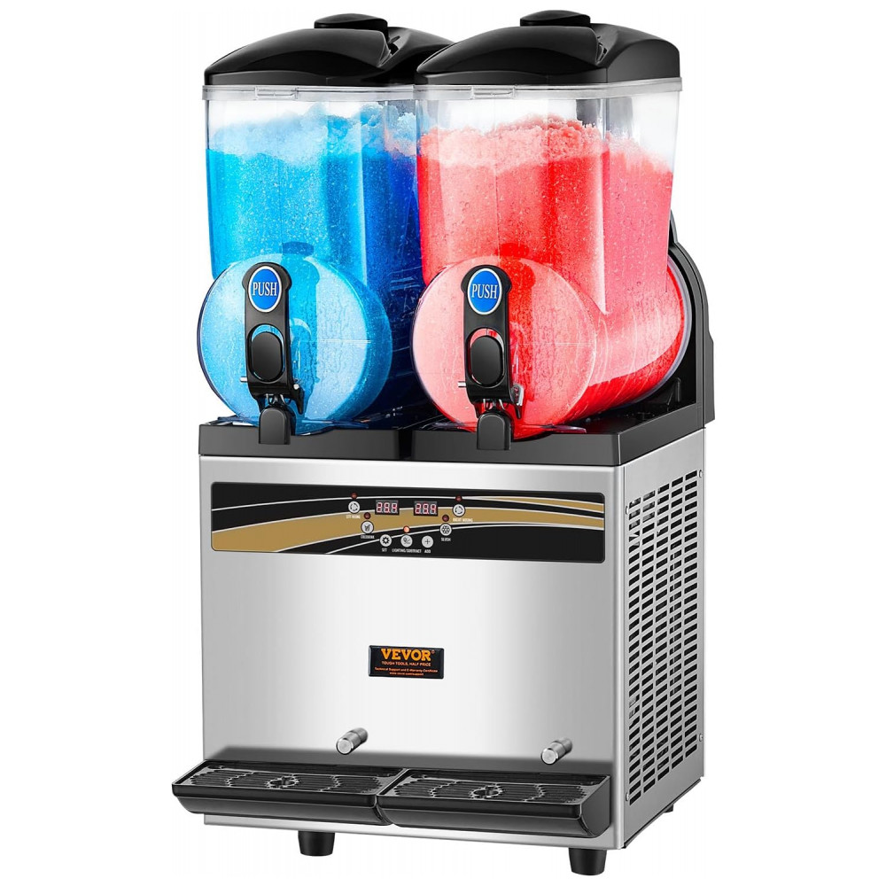 Máquina de Raspadinha Comercial VEVOR Duplo Tanque de 15Lx2 para Bebidas Congeladas Fabricante de Margarita e Smoothie de Aço Inoxidável