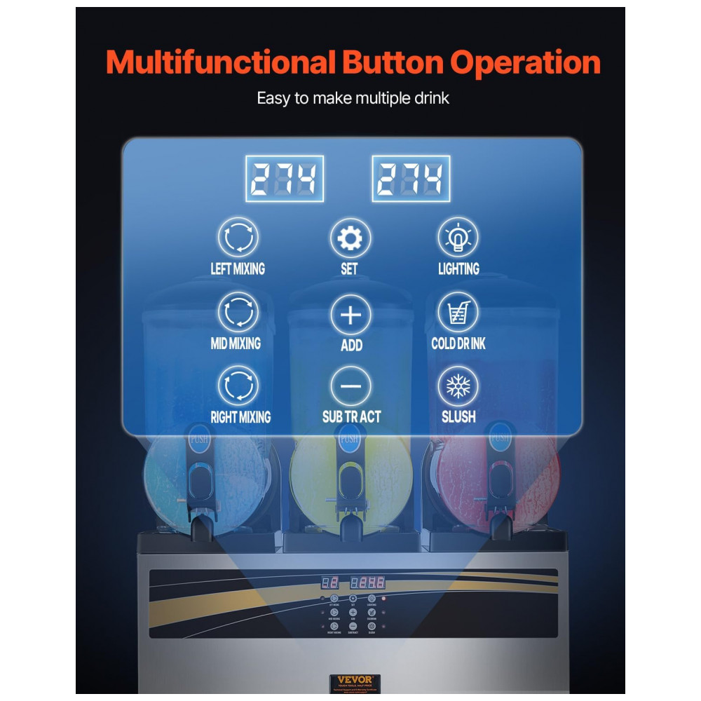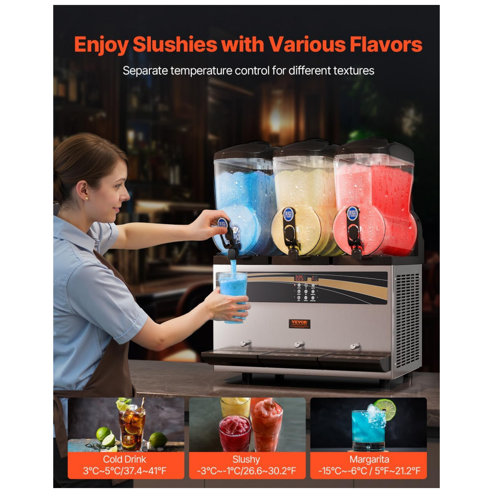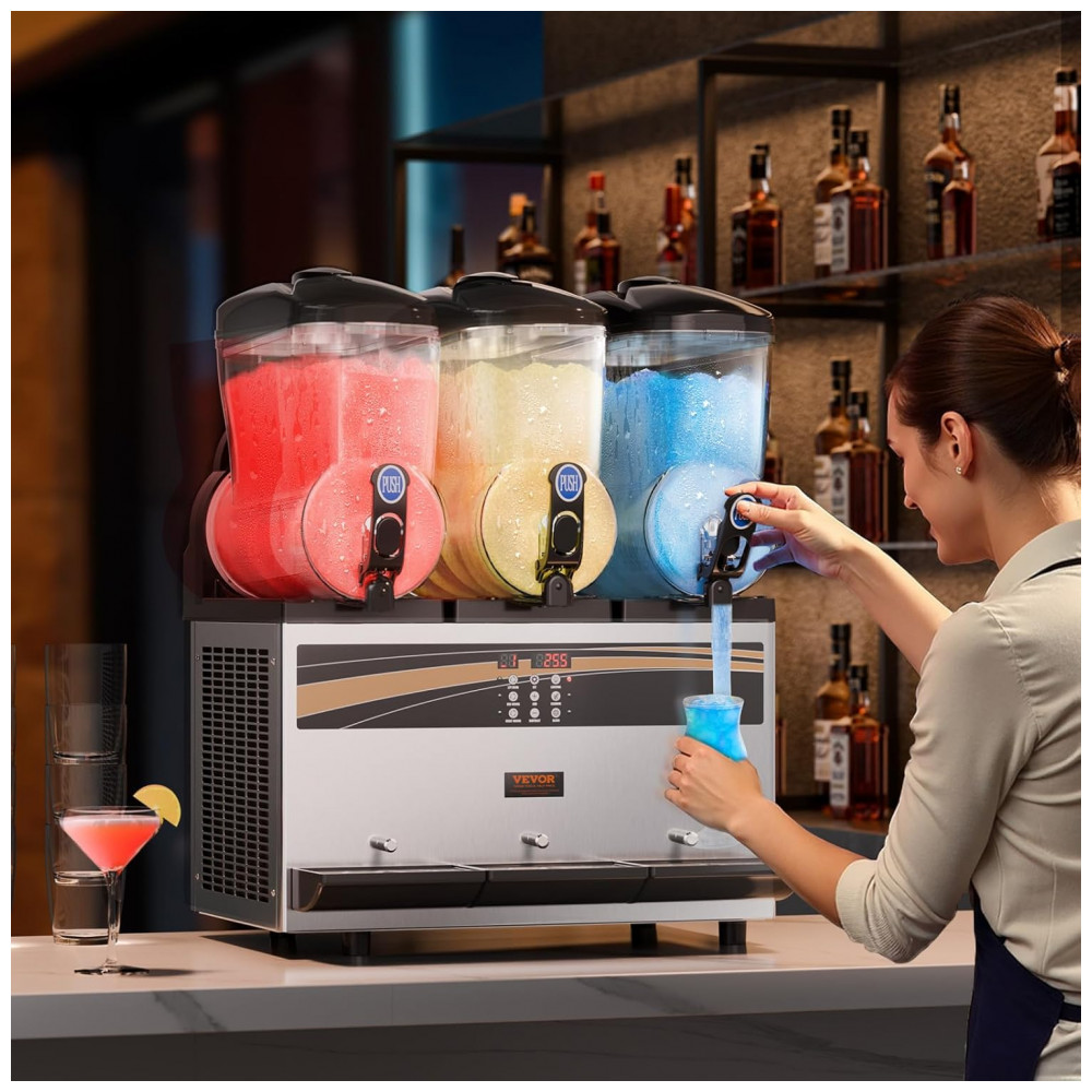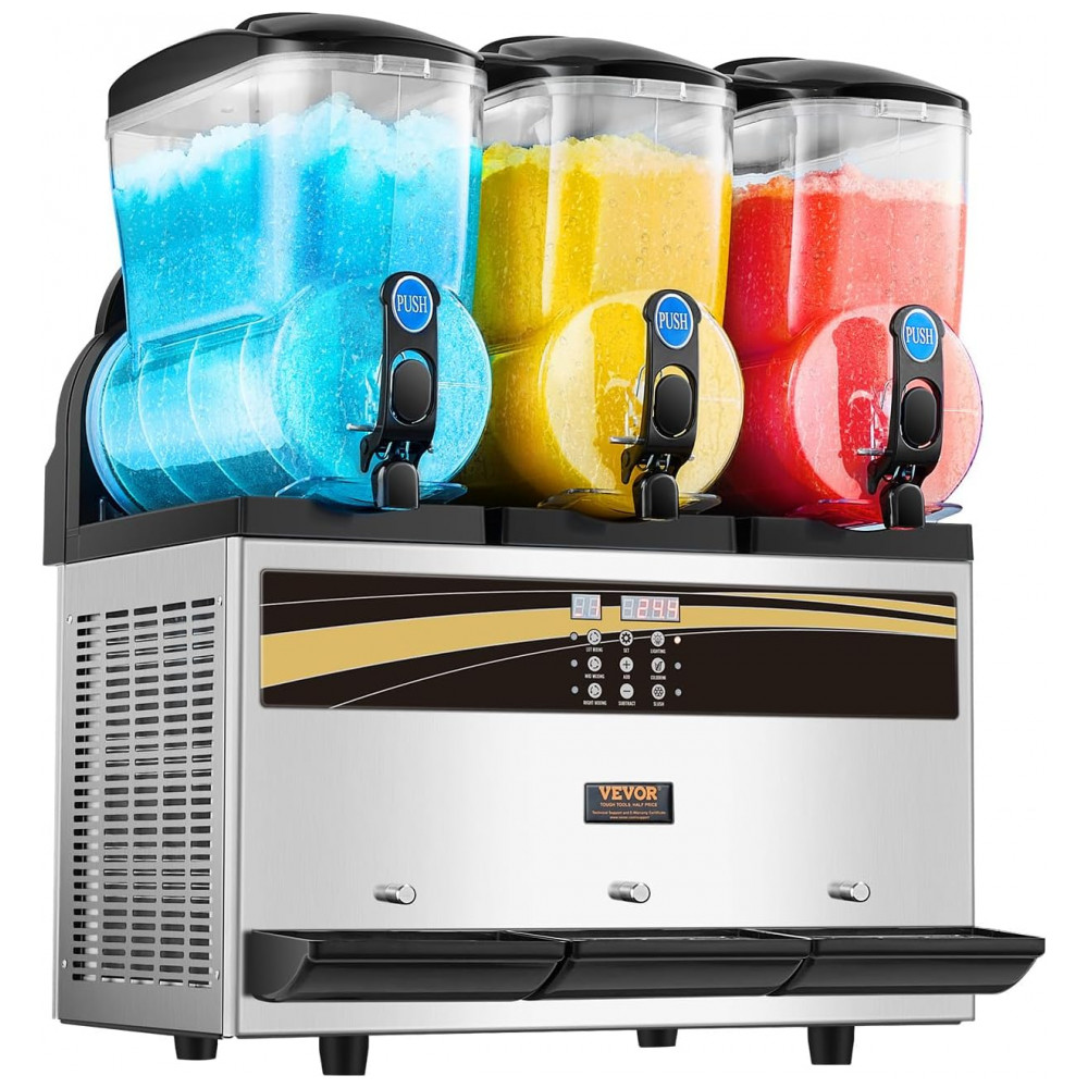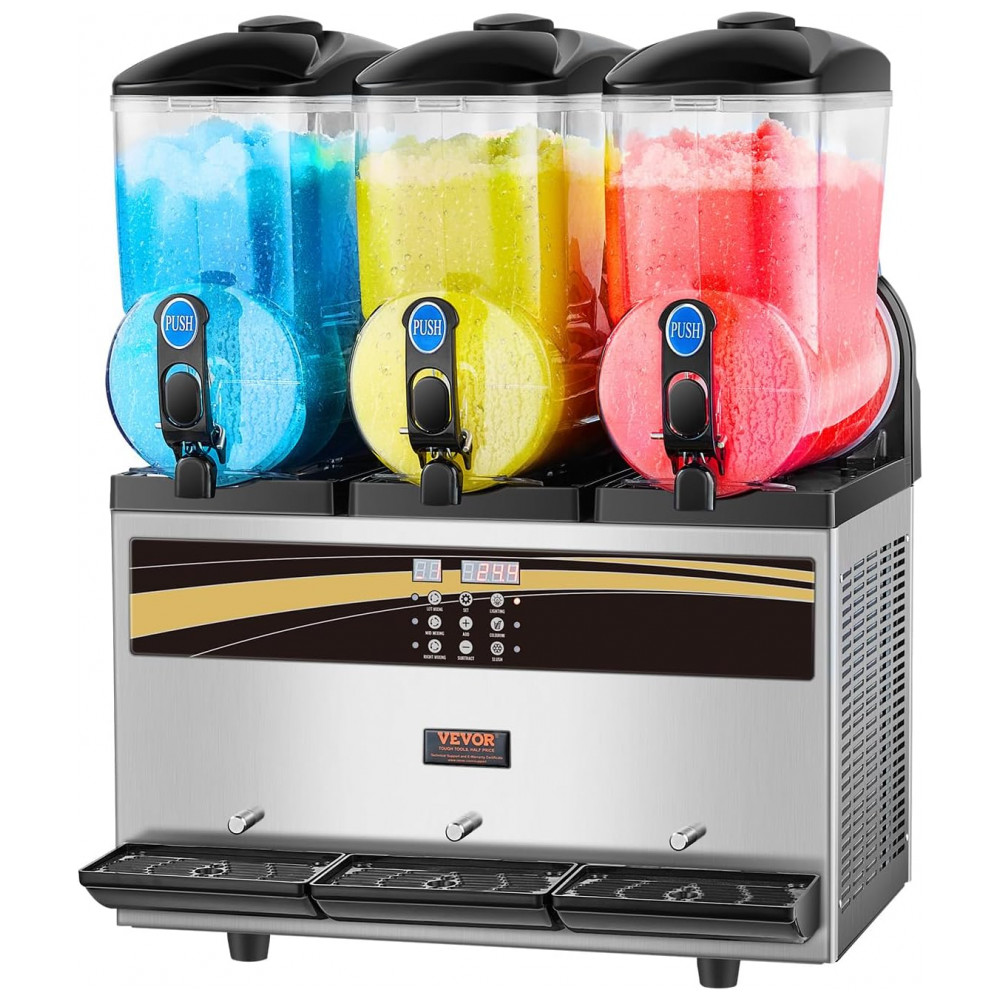 Máquina de Raspadinha Comercial VEVOR Máquina de Raspadinha Triplo Tanque 15Lx3 Fabricante de Bebidas Congeladas em Aço Inoxidável para Margaritas