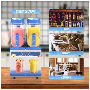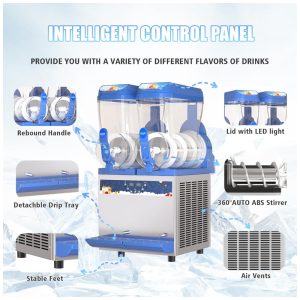 Aplicação Versátil: A temperatura das bebidas frias é mantida entre -1℃ e -3℃. Tempo de preparação: 45-55 minutos. Esta máquina de raspadinha comercial também pode fazer bebidas alcoólicas, sendo perfeita para hotéis, lojas de sobremesas, restaurantes, etc.