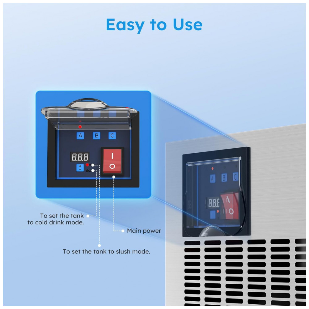 Prepare Margaritas em apenas 20 minutos com a Máquina de Margarita Mojgar! Utilizando um compressor de cobre puro alemão, essa máquina garante uma produção eficiente e rápida, possibilitando a preparação de Margaritas em apenas 20 minutos. Feita com materiais de alta qualidade, a máquina pesa 30kg, oferecendo estabilidade durante o uso, com baixo nível de ruído de aproximadamente 45db. Com capacidade de 15 litros (equivalente a 77 copos de 200ml), possui design à prova de vazamentos, garantindo praticidade na limpeza. Com 3 modos de limpeza automática, ajuste de temperatura e sistema de detecção de temperatura constante, a Mojgar proporciona sempre a melhor experiência em suas bebidas.