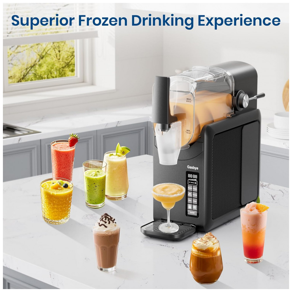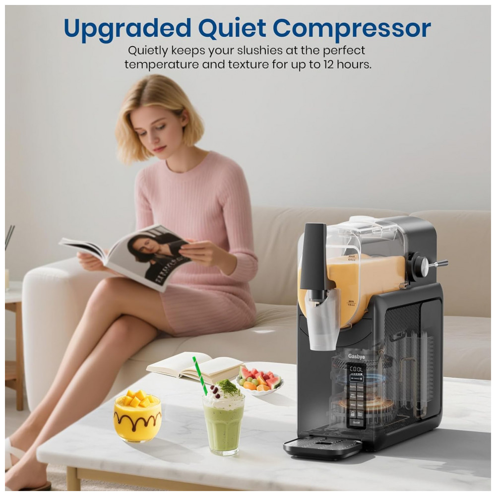 Com resfriamento rápido através de um compressor de alta velocidade, a máquina de frozen Gasbye transforma líquidos em frozen suave sem a necessidade de cubos de gelo pré-preparados. Aproveite bebidas perfeitamente congeladas em apenas 20 a 60 minutos, ideal para encontros familiares e festas. Com 5 configurações pré-definidas que ajustam automaticamente a temperatura para transformar sem esforço suas bebidas favoritas – vinho, café, refrigerante, suco, leite com chocolate e mais – em deliciosas sobremesas geladas, proporcionando uma experiência superior de bebidas congeladas para sua família. Com capacidade de 2,62 litros, o recipiente foi atualizado para 2,04 litros e pode conter até 2 litros de líquido, sendo capaz de servir 7 pessoas em um único lote. Ideal para festas, sobremesas ou noites relaxantes com família e amigos. Fácil de limpar, com autolimpeza integrada que simplifica a manutenção, além da tampa removível e bandeja removível que são seguras para lava-louças. O pacote inclui um livro de receitas e há tutoriais online disponíveis para orientação. Dimensões do produto: 15,21 x 30,48 x 40,64 centímetros. Peso do item: 3,62 quilogramas. Modelo: ISM2659D.